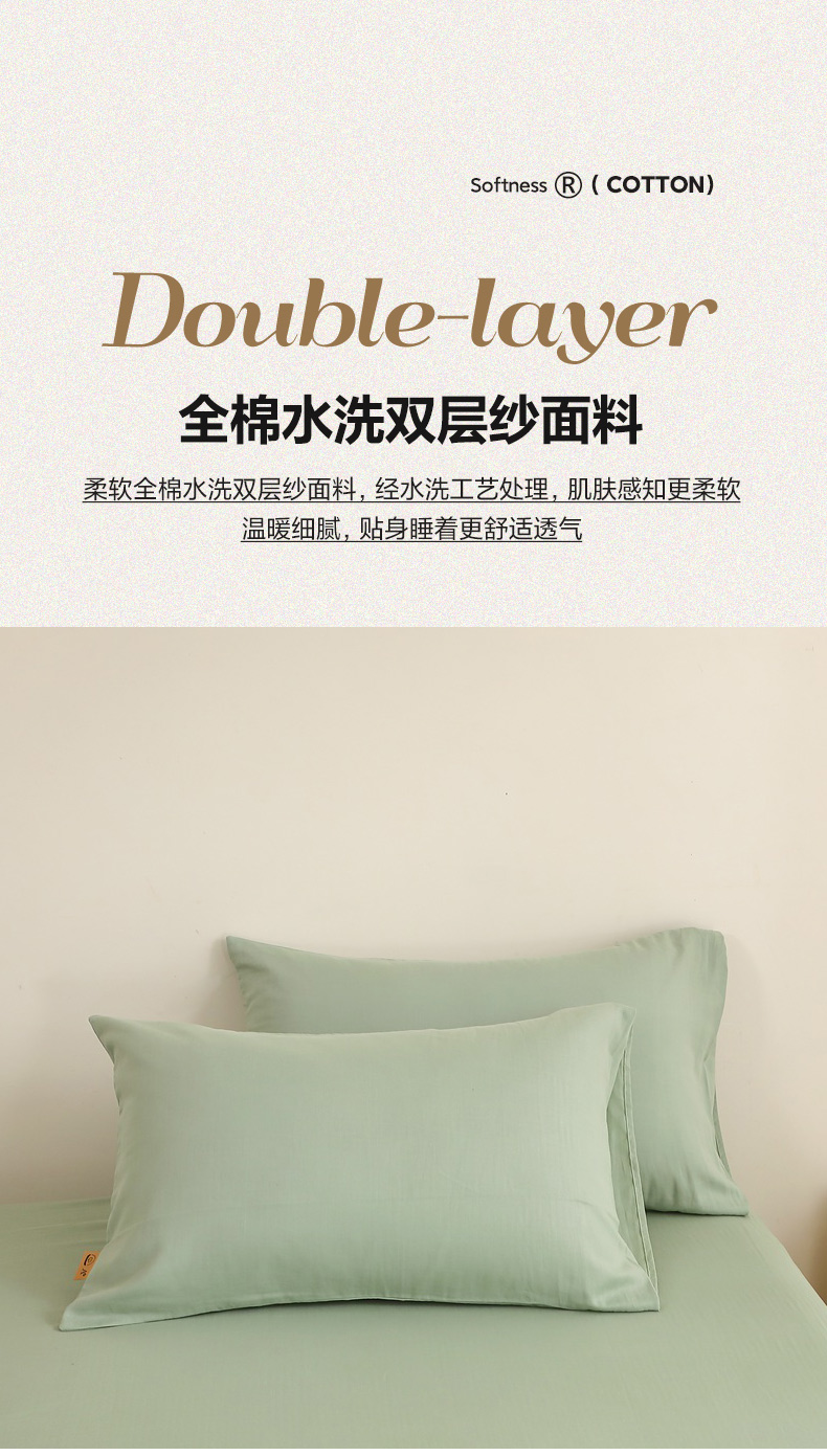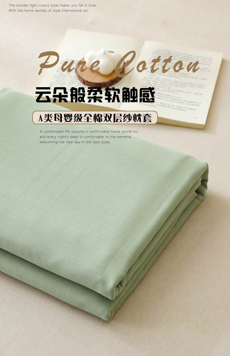 晶缦家纺 2026新款纯棉纯色A类全棉双层纱单品枕套枕套单件单枕套(水洗预处理)-觅琳系列 觅琳-嫩荷绿