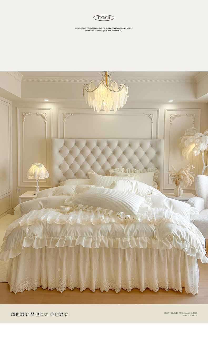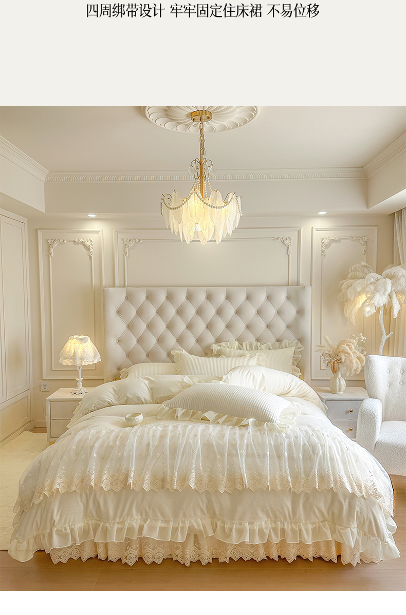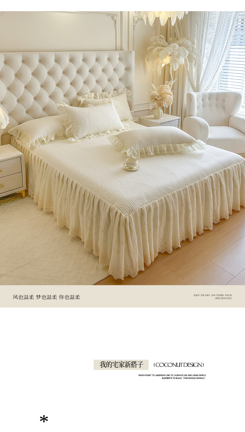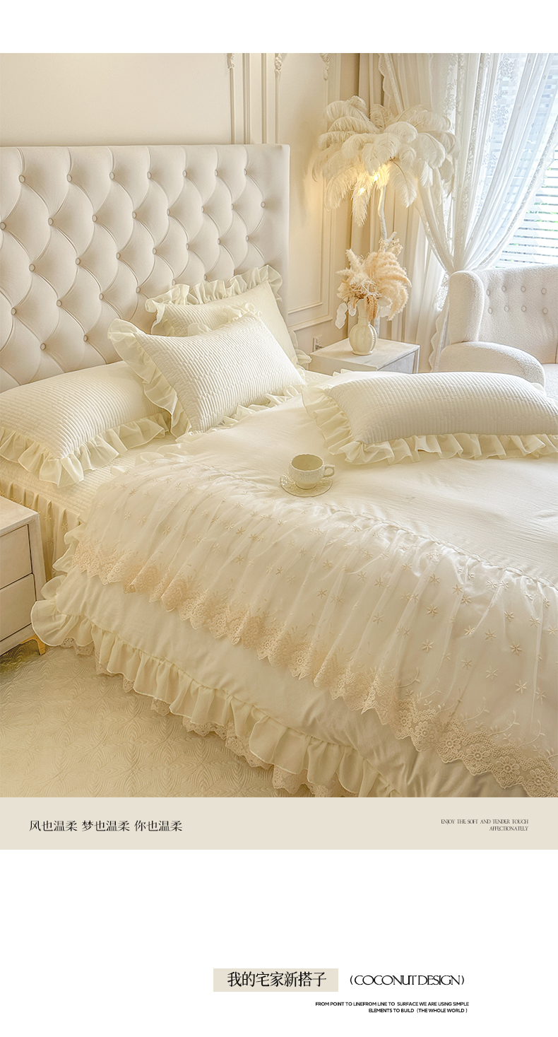 商品名称:瑞宝 2026新款泡芙棉花边床裙四件套-栀子海 栀子海-柔白