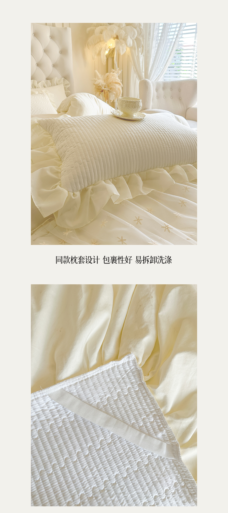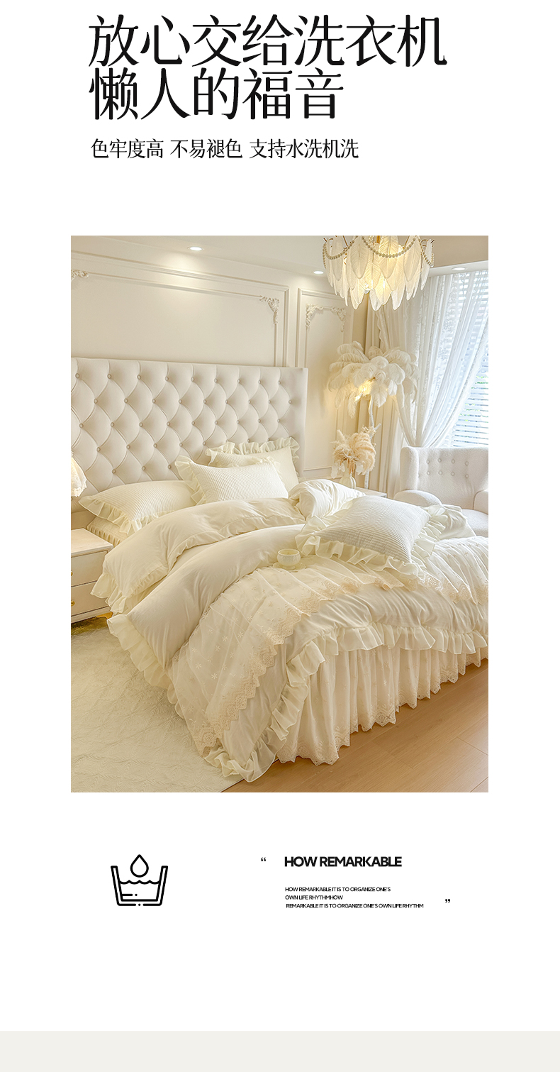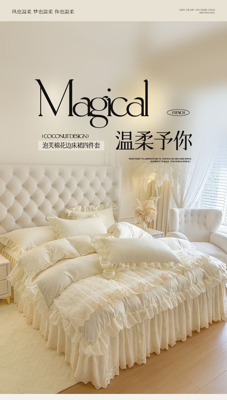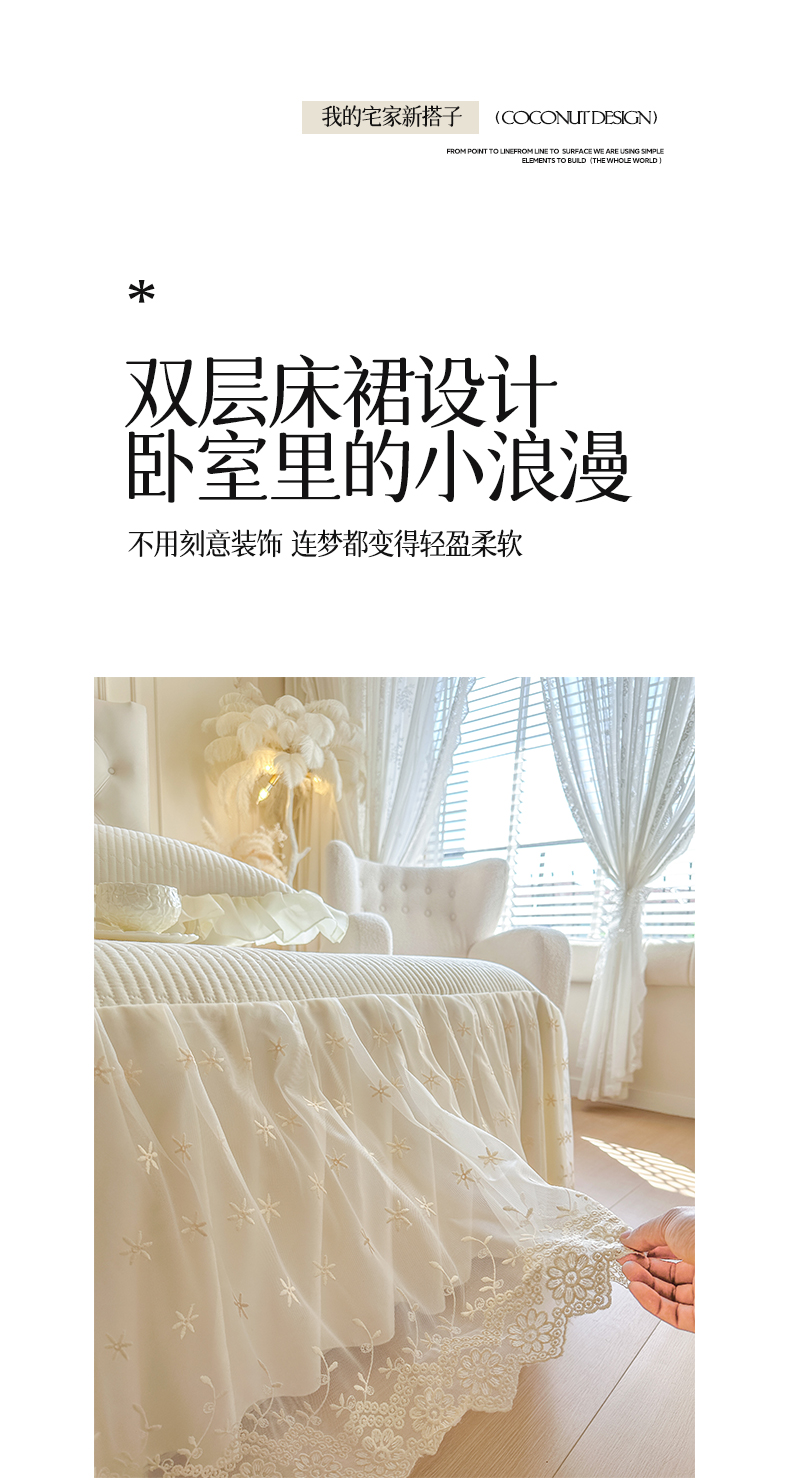 商品名称:瑞宝 2026新款泡芙棉花边床裙四件套-栀子海 栀子海-柔白