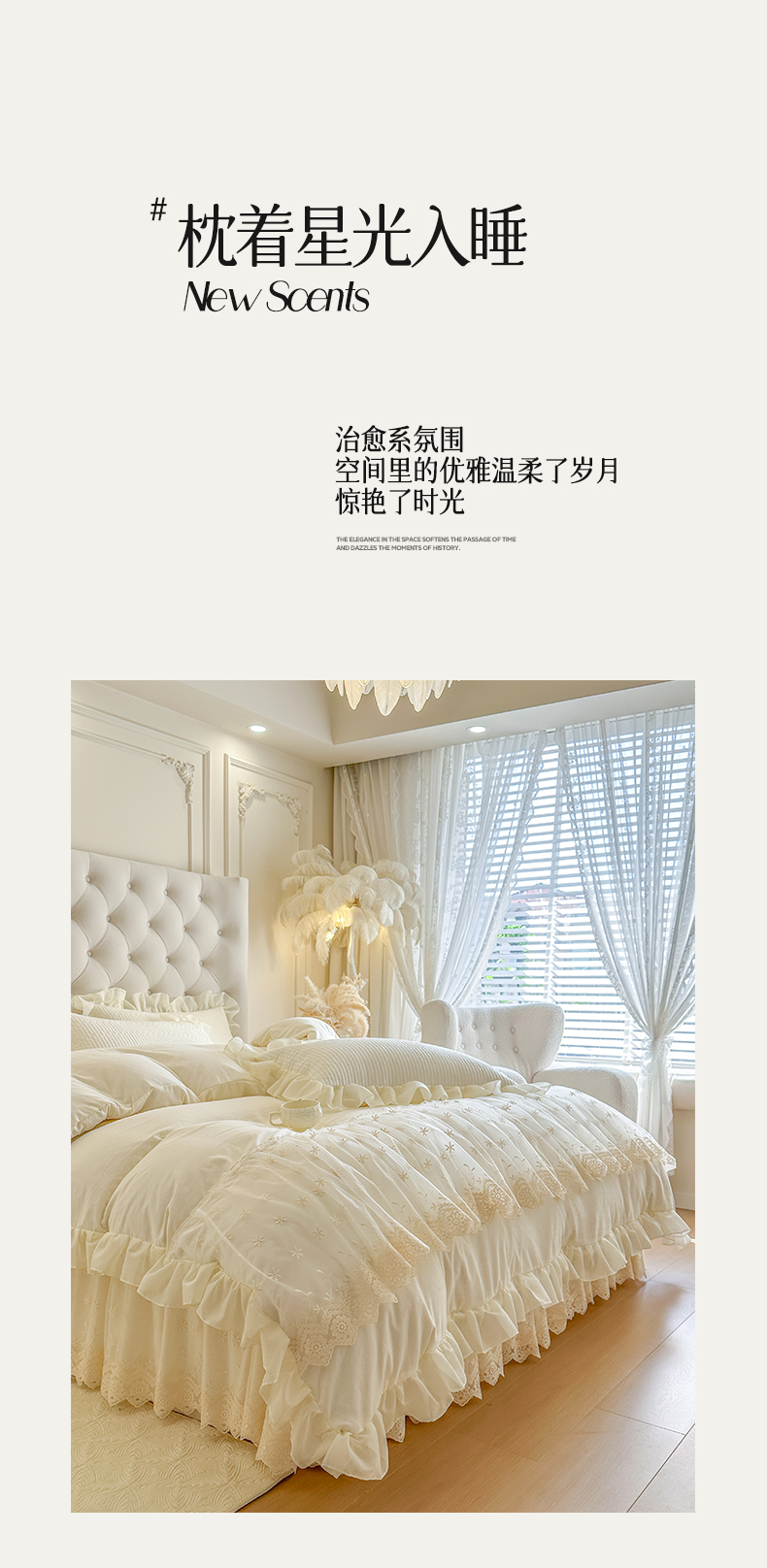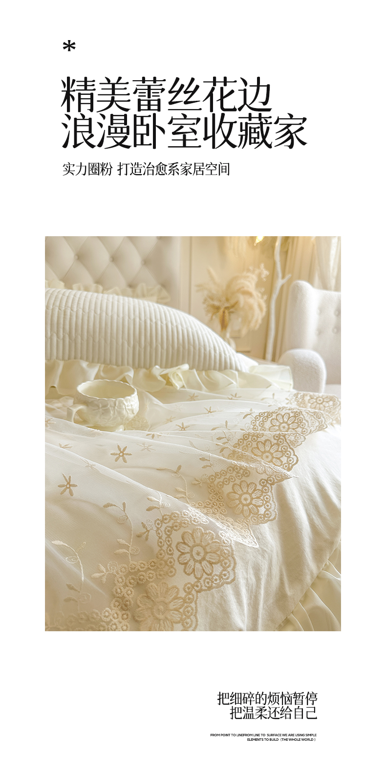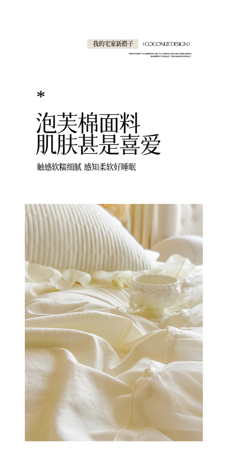 商品名称:瑞宝 2026新款泡芙棉花边床裙四件套-栀子海 栀子海-柔白