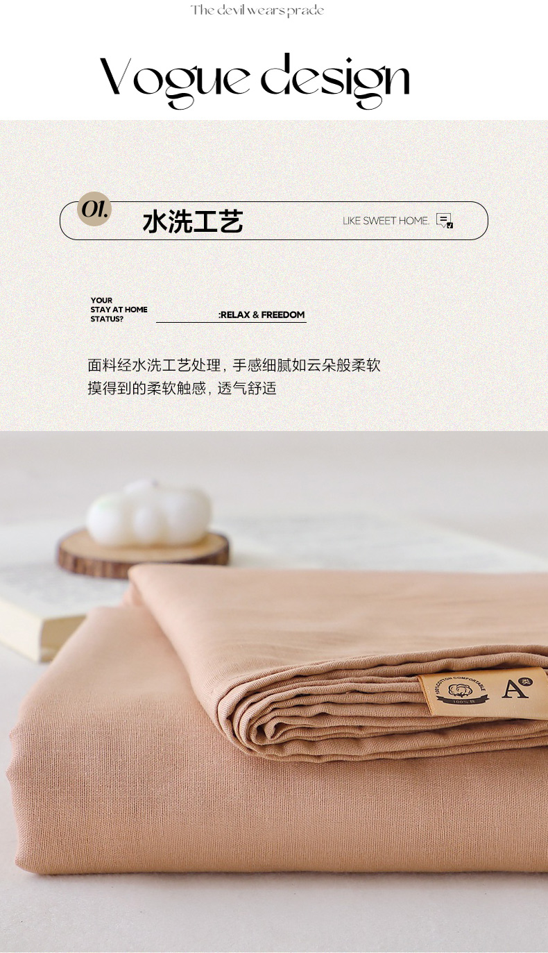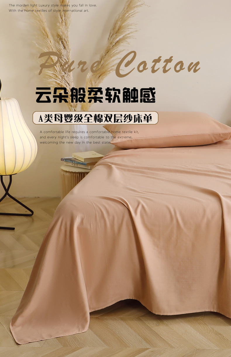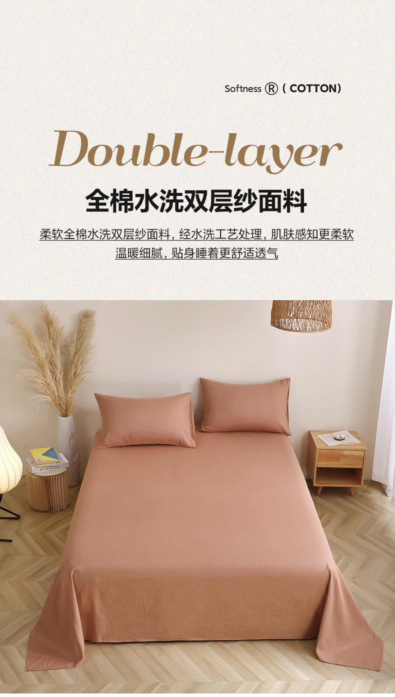 晶缦家纺 2026新款纯棉纯色A类全棉双层纱单品床单床单单件单床单(水洗预处理)-觅琳系列 觅琳-朱颜酡