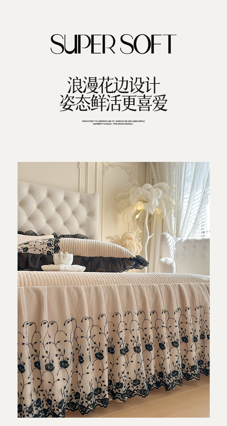 • 91家纺网 家纺一手货源 找家纺 瑞宝 2026新款泡芙棉花边床裙三件套-南法玫瑰 南法玫瑰-奶茶色