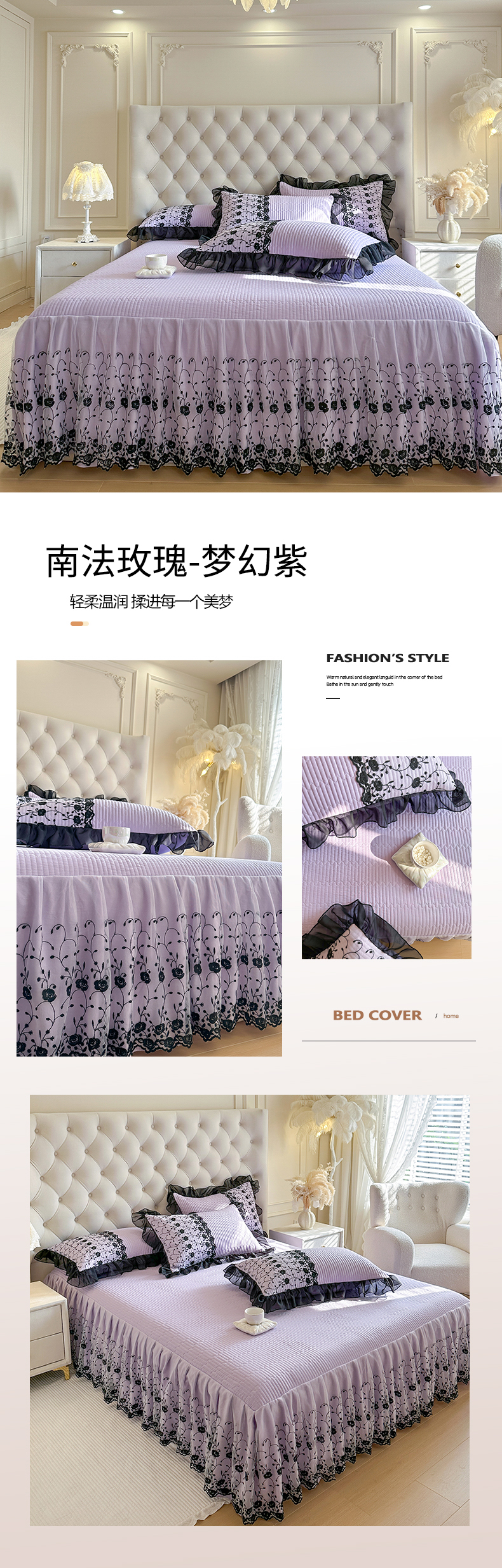 • 91家纺网 家纺一手货源 找家纺 (总)瑞宝 2026新款泡芙棉花边床裙四件套-南法玫瑰,南法玫瑰-粉玉,南法玫瑰-梦幻紫,南法玫瑰-樱花粉,南法玫瑰-雾蓝,南法玫瑰-奶油白,南法玫瑰-抹茶绿,南法玫瑰-奶茶色,南法玫瑰-高级米