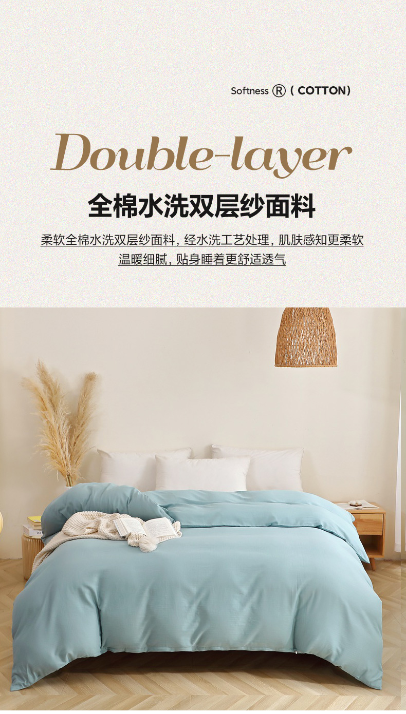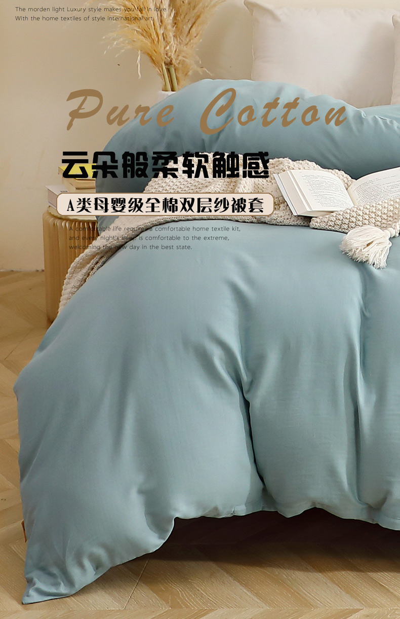 晶缦家纺 2026新款纯棉纯色A类全棉双层纱单品被套被套单件单被套(水洗预处理)-觅琳系列 觅琳-桃青蓝