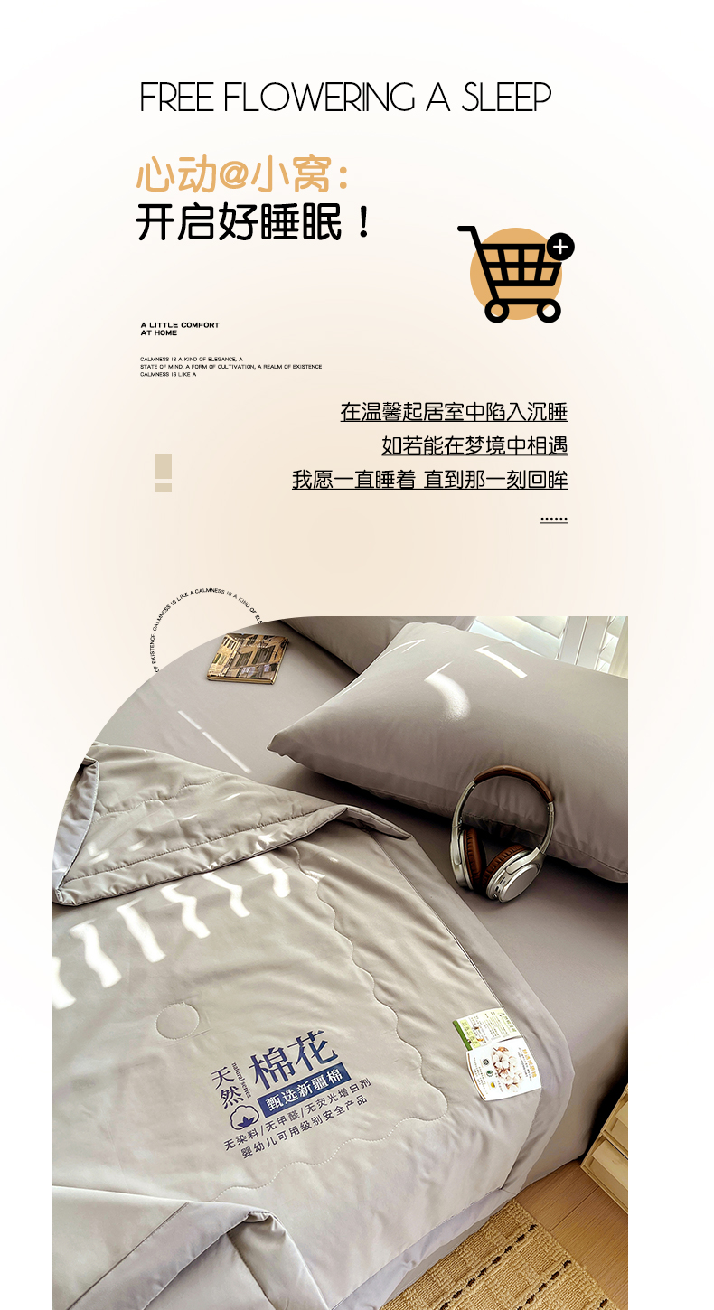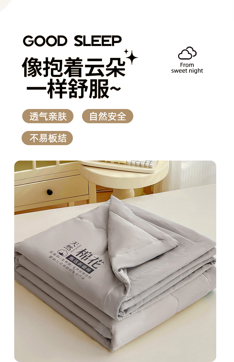 商品名称:易展家居 2026新款水洗棉新疆棉花夏被-棉花2 棉花-浅灰