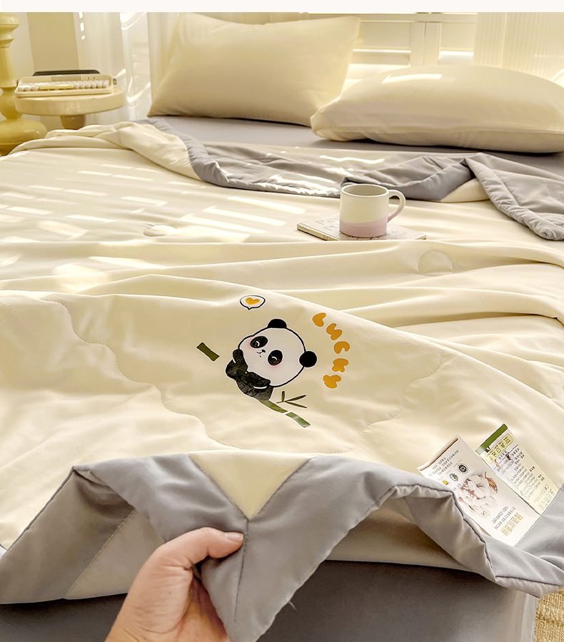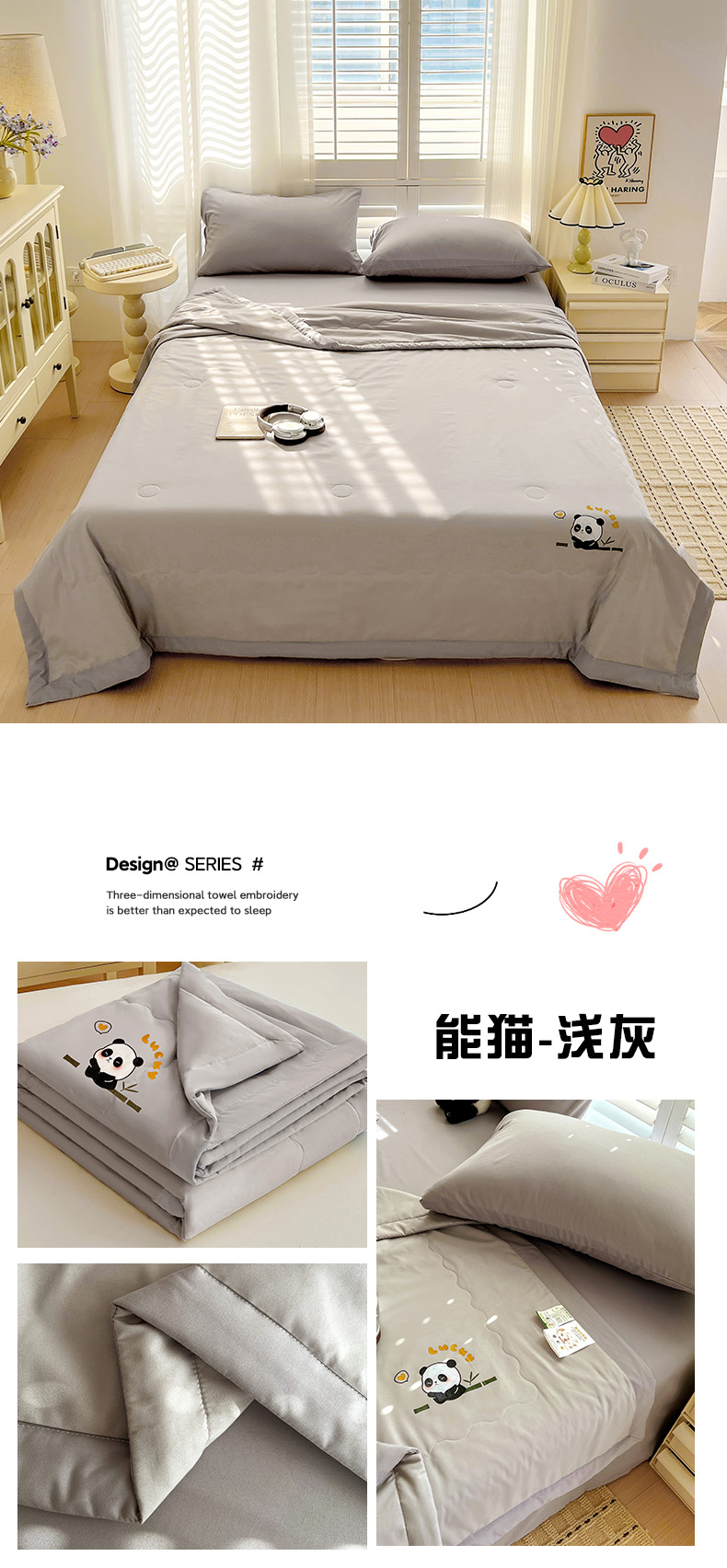 (总)易展家居 2025年新款水洗棉熊猫夏被,熊猫-奶昔白,熊猫-轻绿,熊猫-轻银粉,熊猫-轻银灰