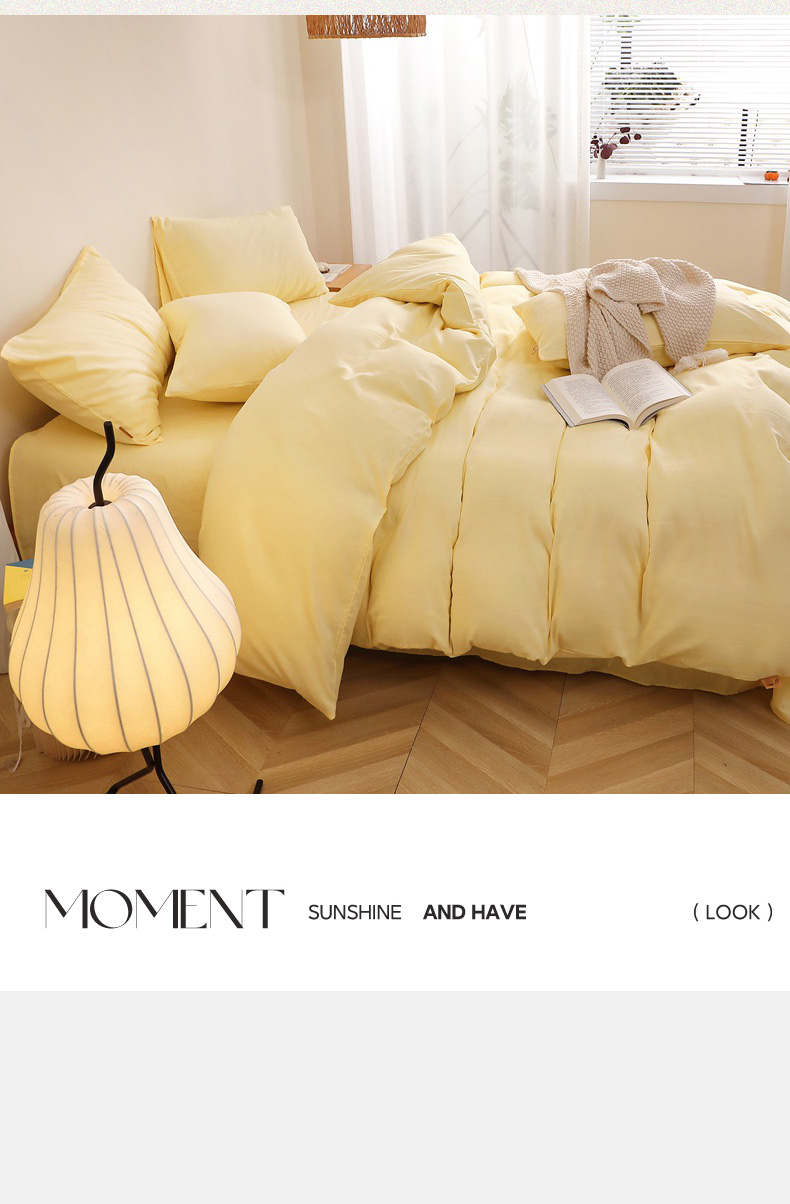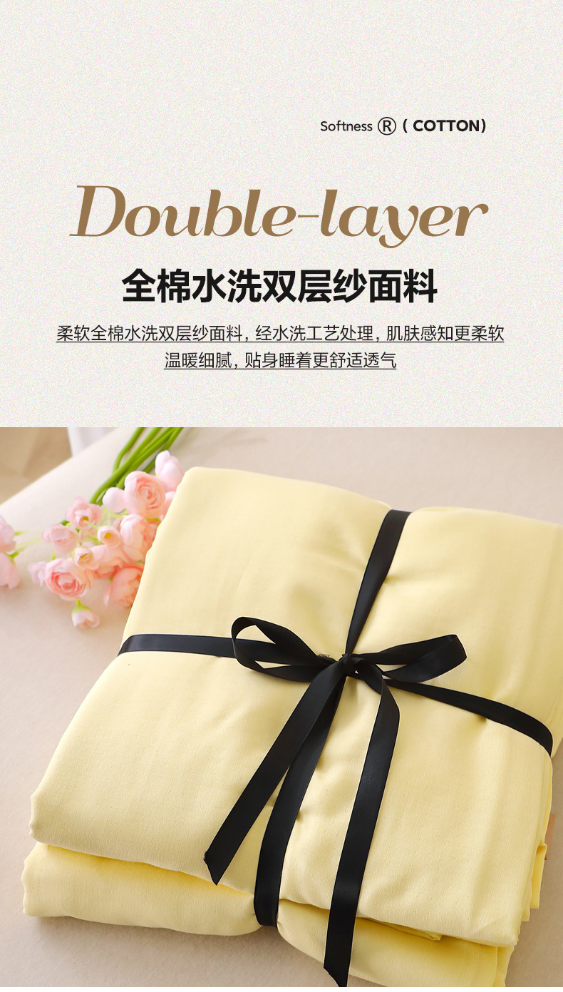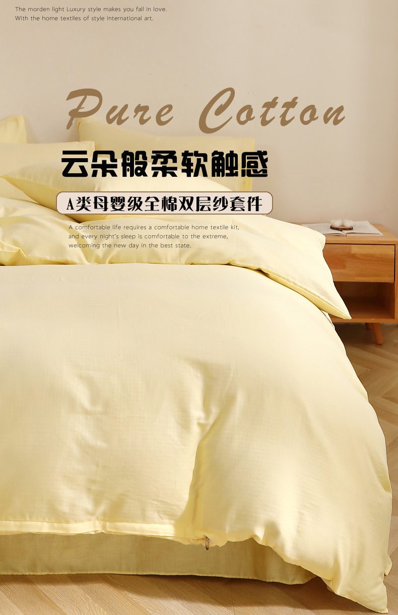 当前位置: 91家纺网 > 商品网购 > 床品套件 > 四件套 > 全棉普通四件套 > 晶缦家纺 2026新款纯棉纯色A类全棉双层纱四件套(水洗预处理)-觅琳系列 觅琳-浅蜜黄