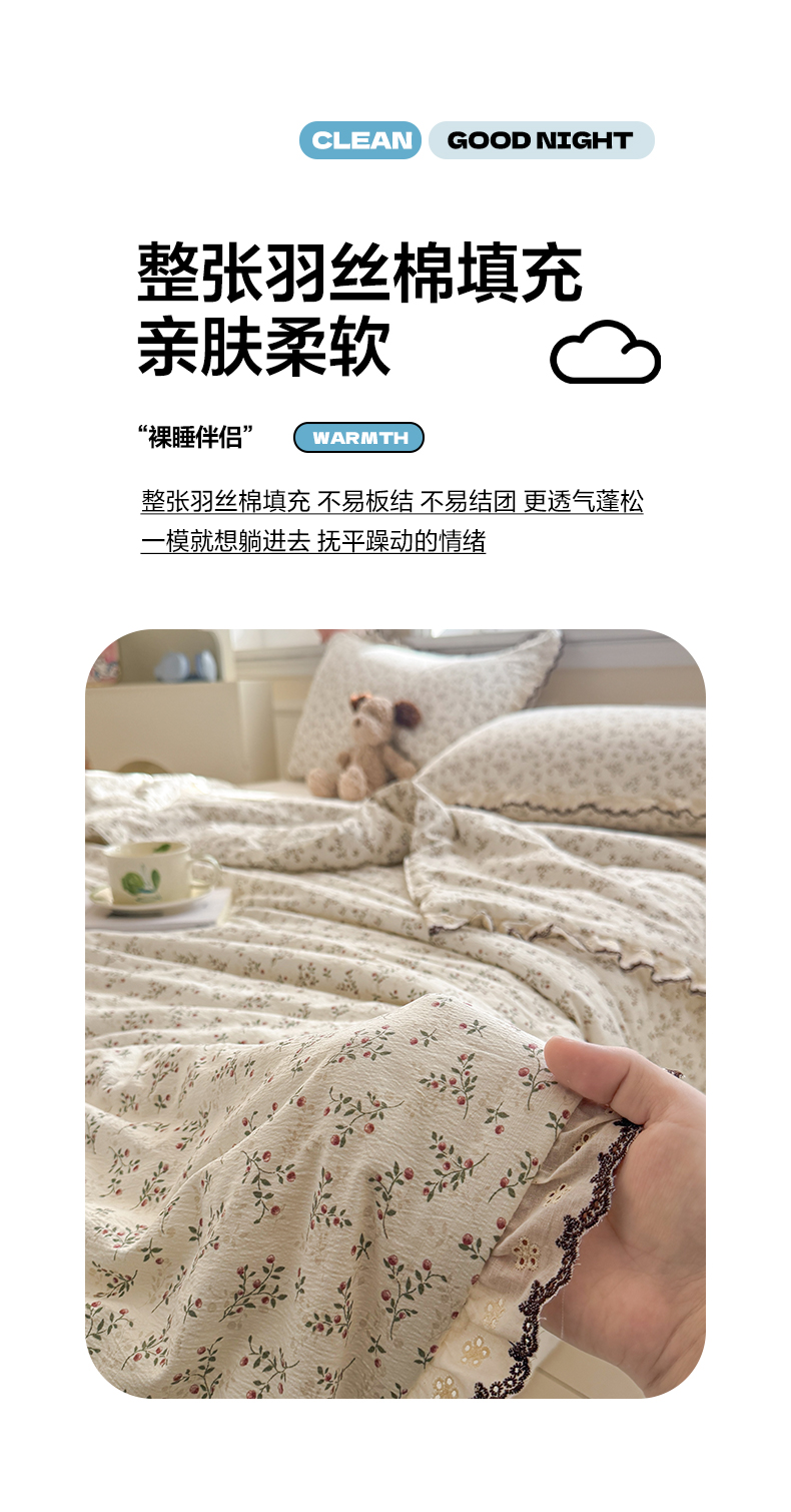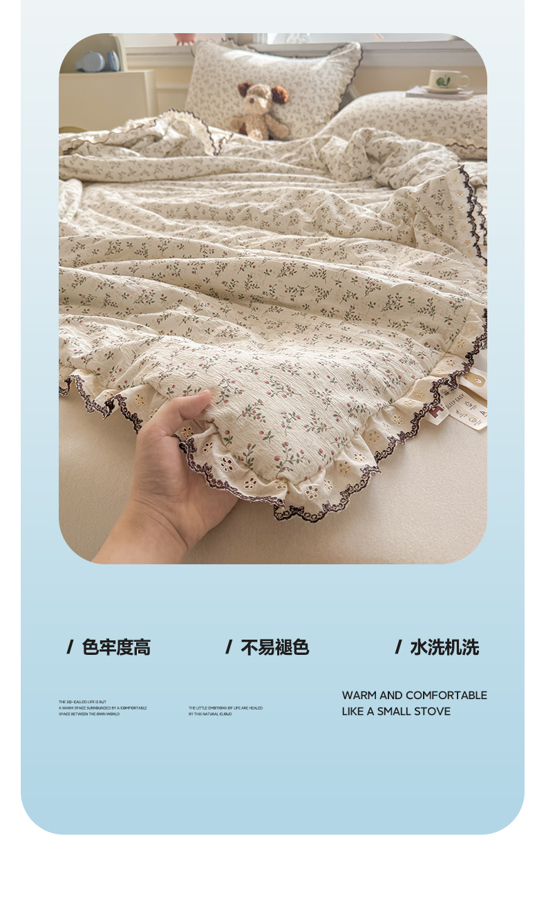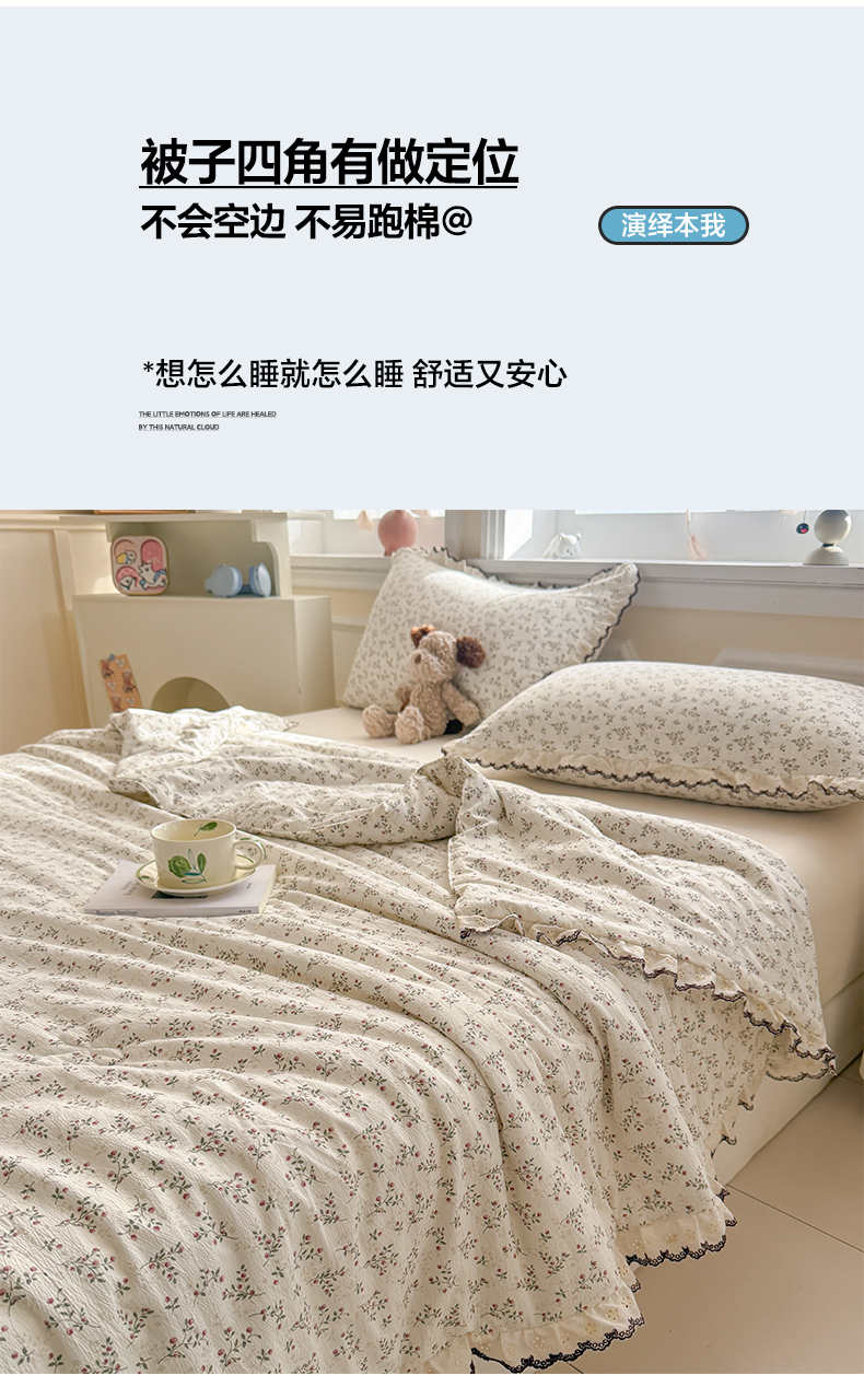 商品名称:鑫贝阳 2026新款韩版花边邹邹绵夏被 奶雾花野
