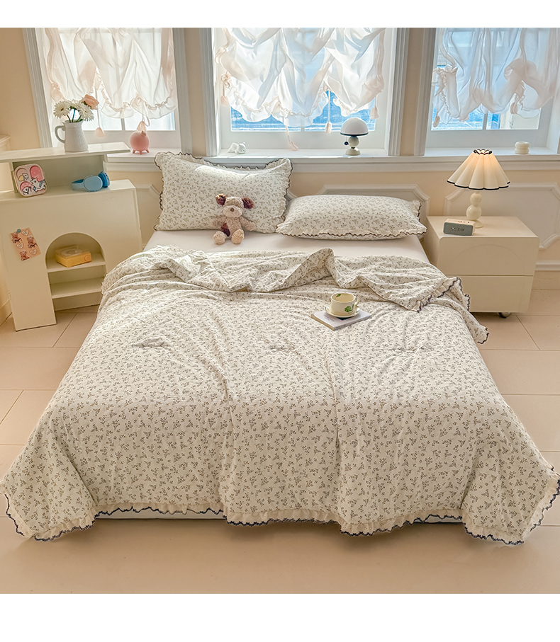鑫贝阳 2026新款韩版花边邹邹绵夏被 奶雾花野