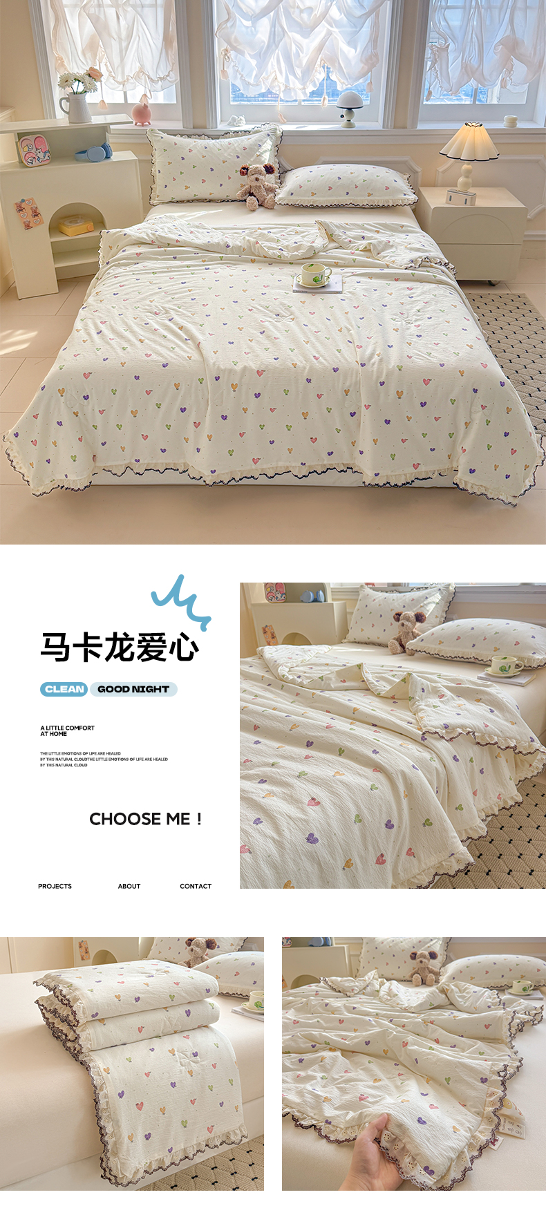 (总)鑫贝阳 2026新款韩版花边邹邹绵夏被,爱心格,薄荷小森林,马卡龙爱心,蘑菇小森林,奶雾花野,碎碎小碎花