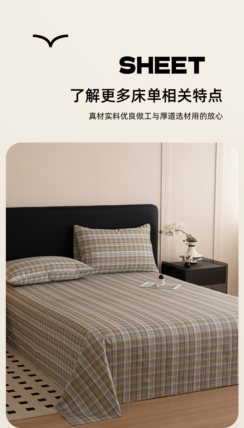 简宜家居(朝初家纺) 2026新款40支13070全棉简约格子系列A版床单 抹茶格
