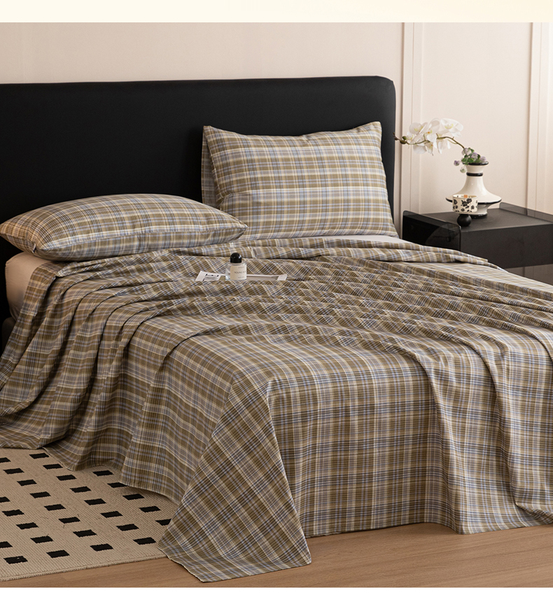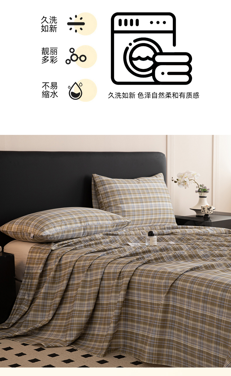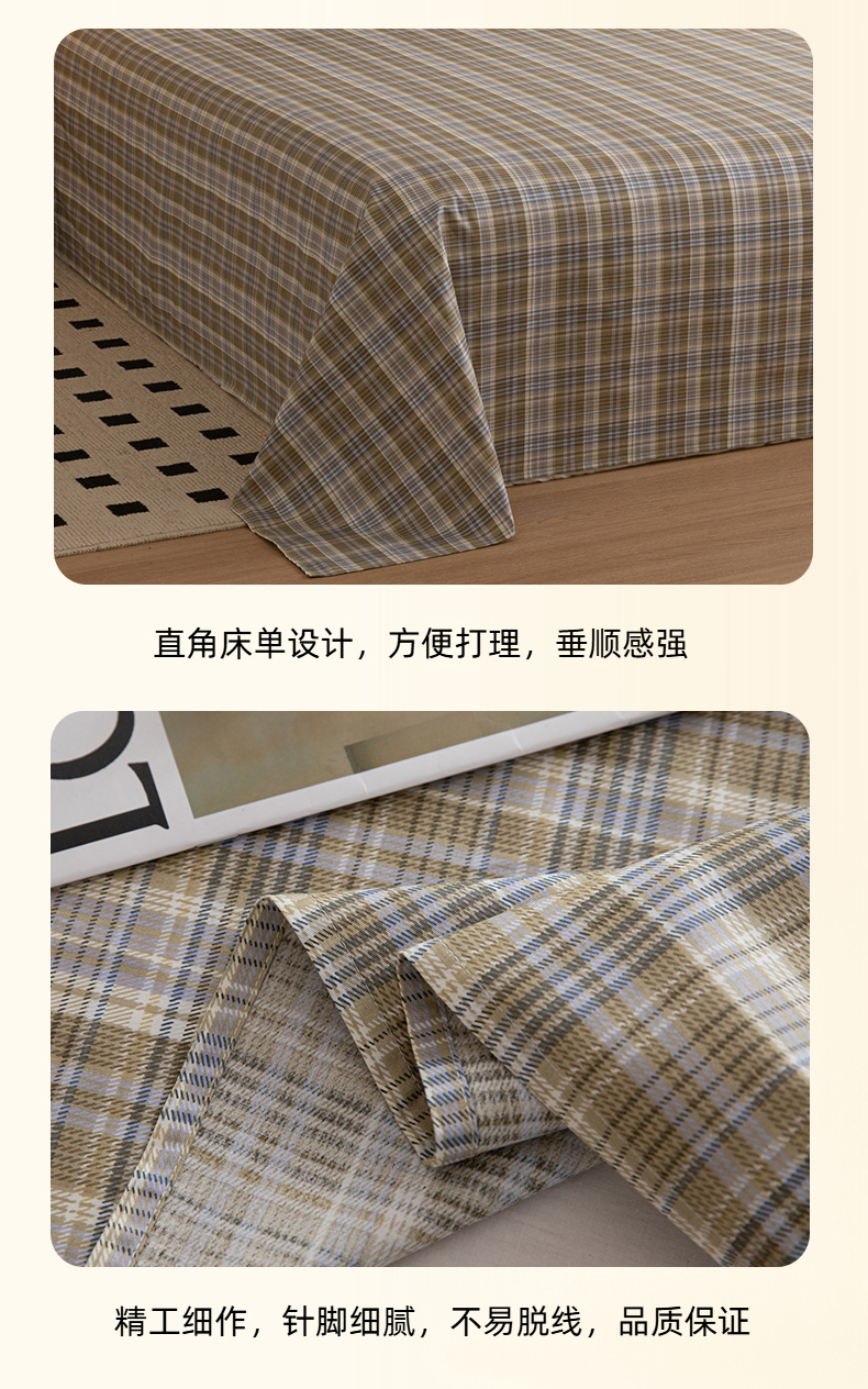 • 91家纺网 家纺一手货源 找家纺 简宜家居(朝初家纺) 2026新款40支13070全棉简约格子系列A版床单 抹茶格