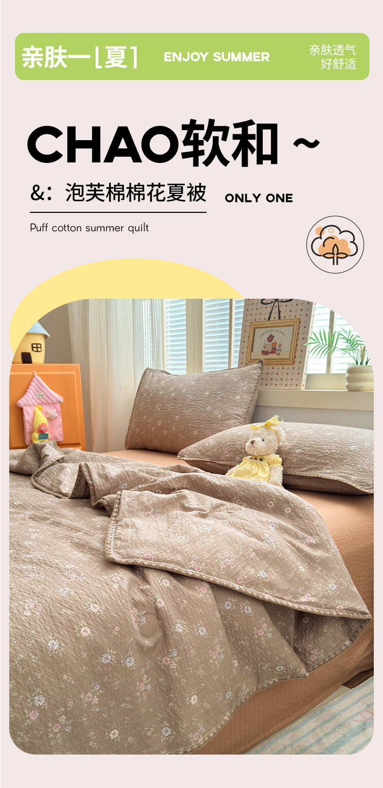 商品名称:暖阳 2026新款100%棉花泡芙棉贝壳夏被被子被芯 咖色情调