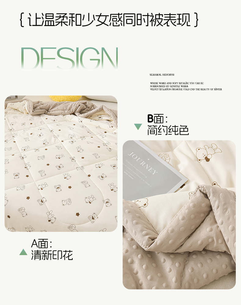 (总)壹张床 2025新款A类新疆棉花被糯糯棉子母被冬被印花被芯春秋被学生被子母扣系列,粉色,灰色,米白