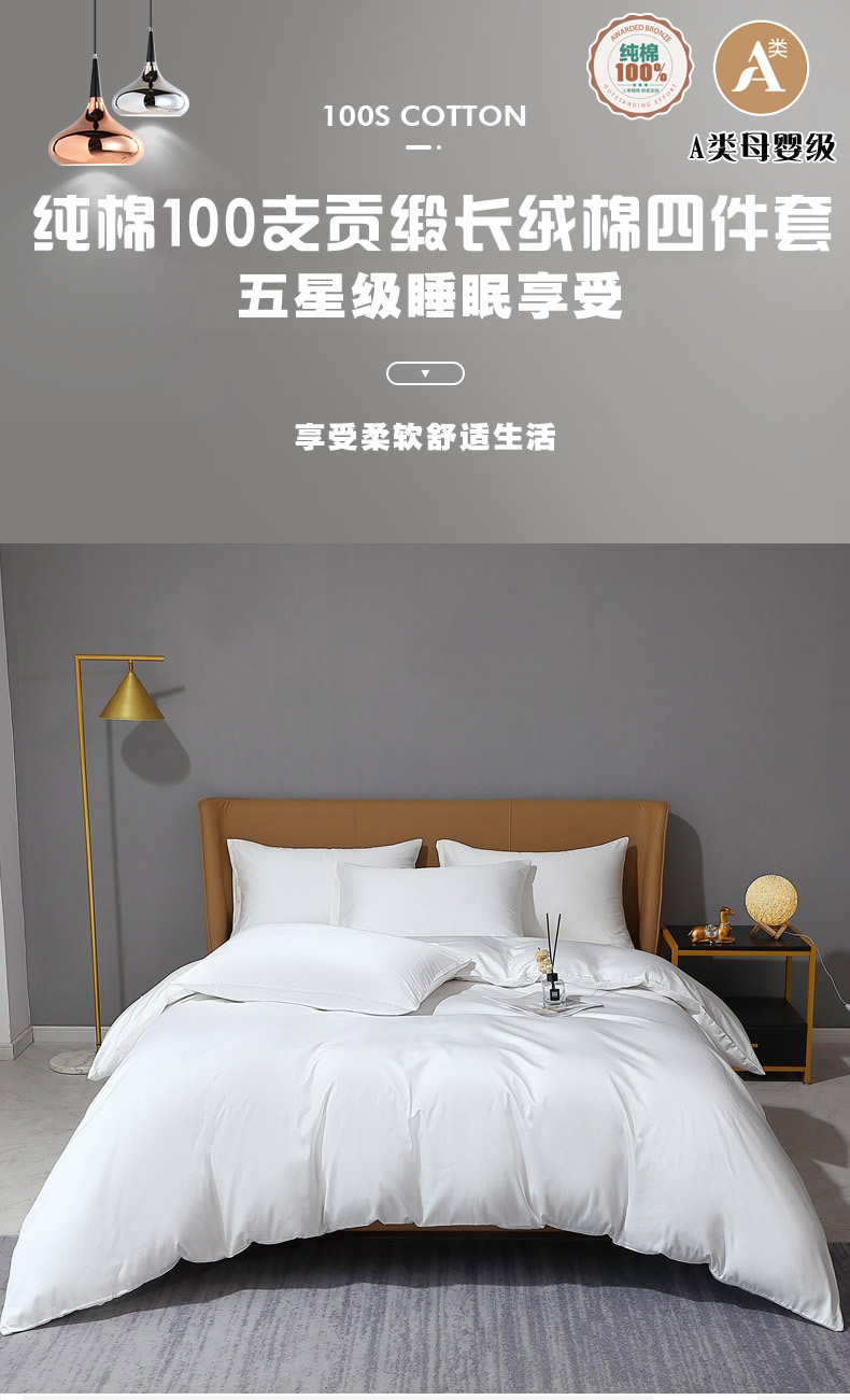 当前位置: 91家纺网 > 商品网购 > 床品套件 > 四件套 > 全棉普通四件套 > 晶缦家纺 2026新全棉A类纯棉100支贡缎长绒棉纯色多规格四件套-绮云系列 绮云-本白色