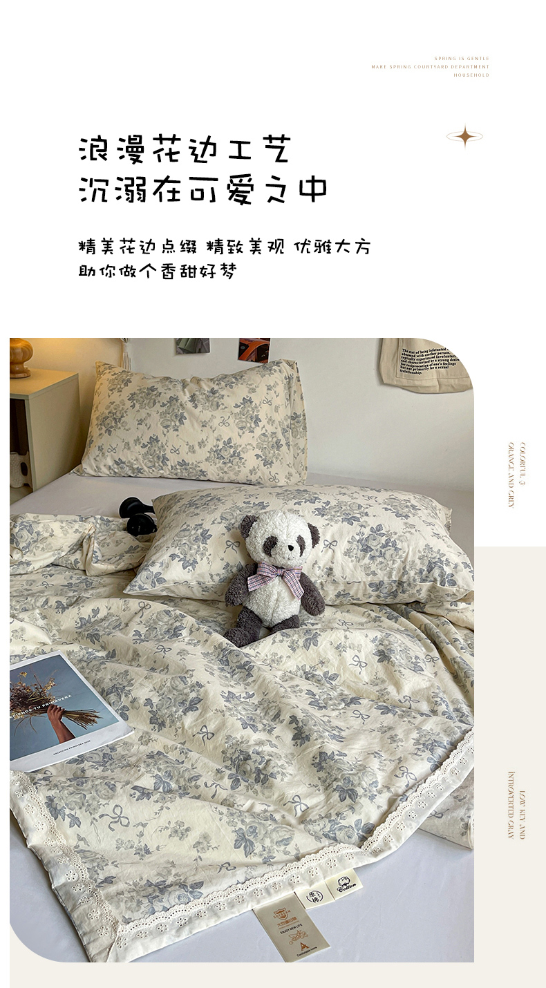 (总)耀悦家纺 2026新款全棉纯棉a类双层纱小清新四件套,春日茶语,风雅居,梅花清客,木瑾,南山小兔,星河花海