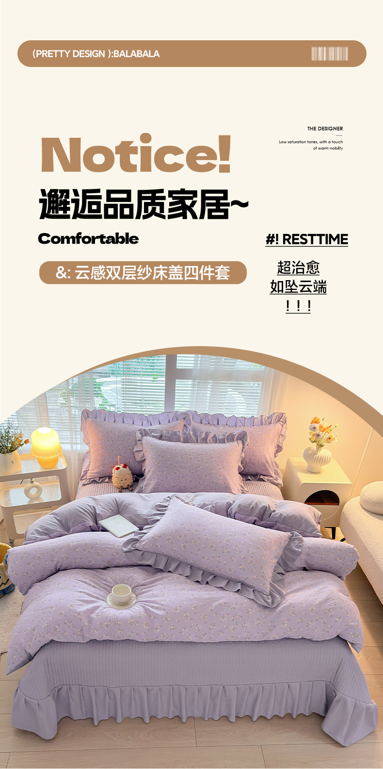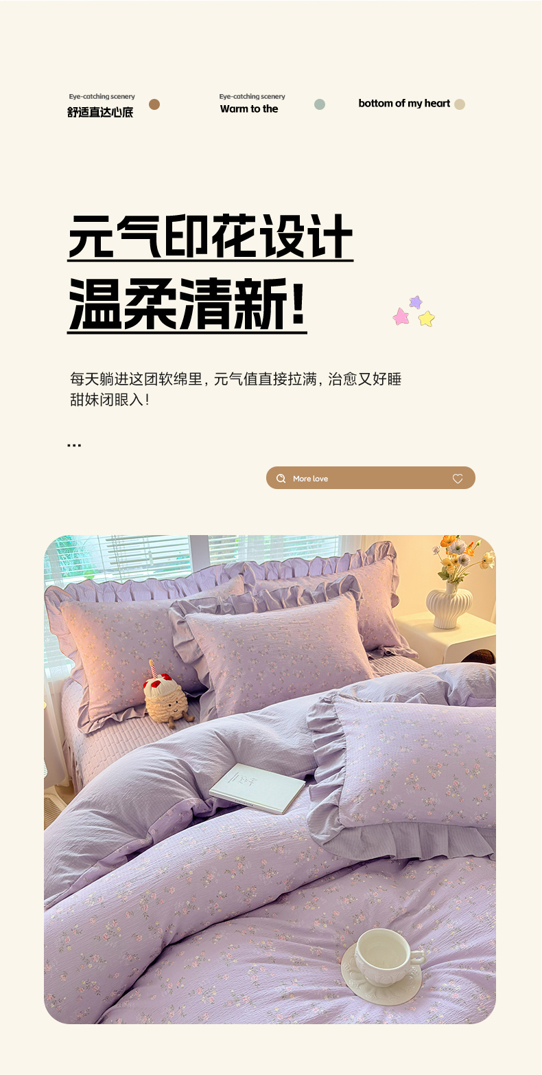 商品名称:畅畅家纺 2026新款春夏小清新泡芙双层纱床盖款四件套 紫梦花语