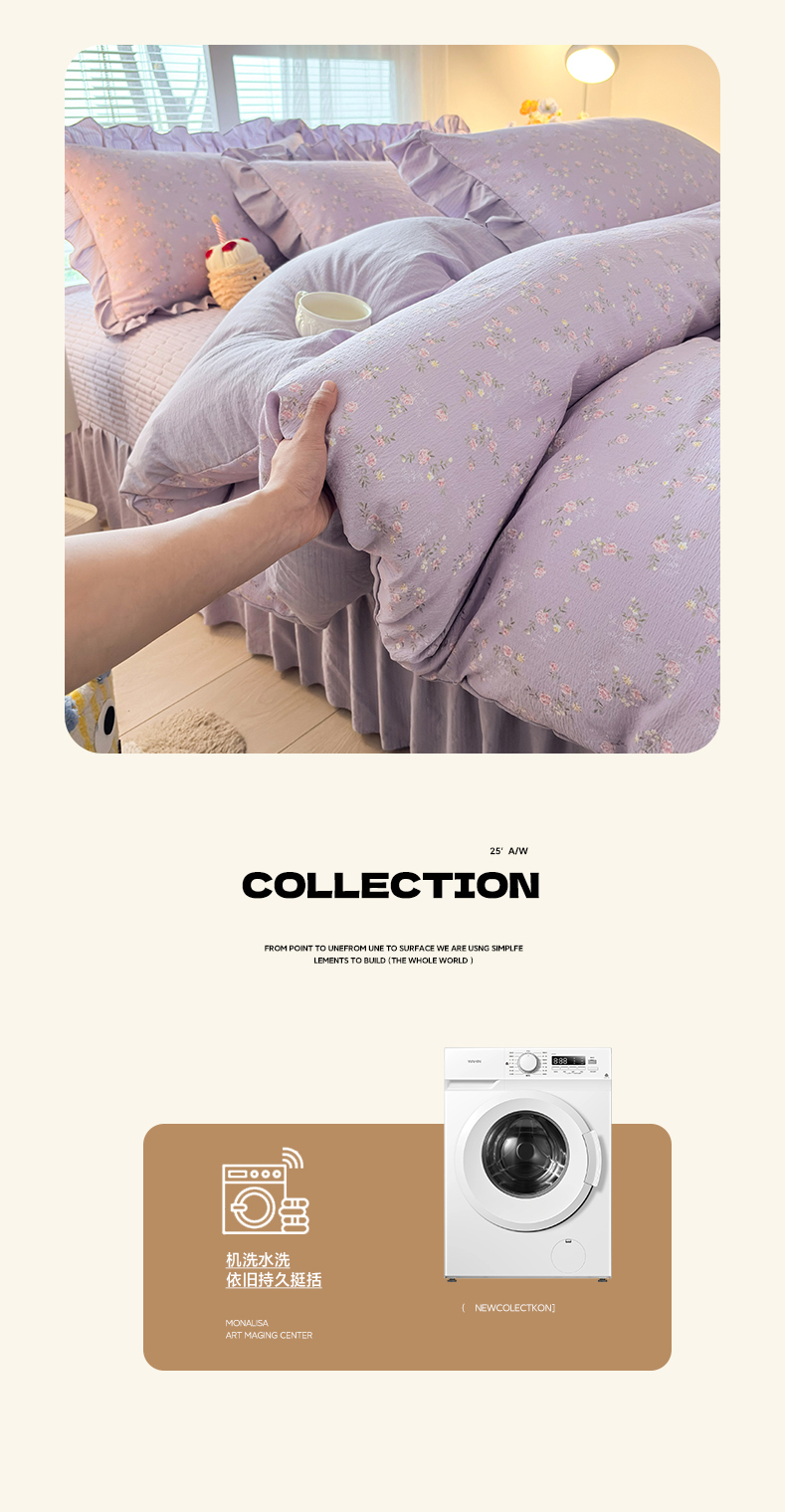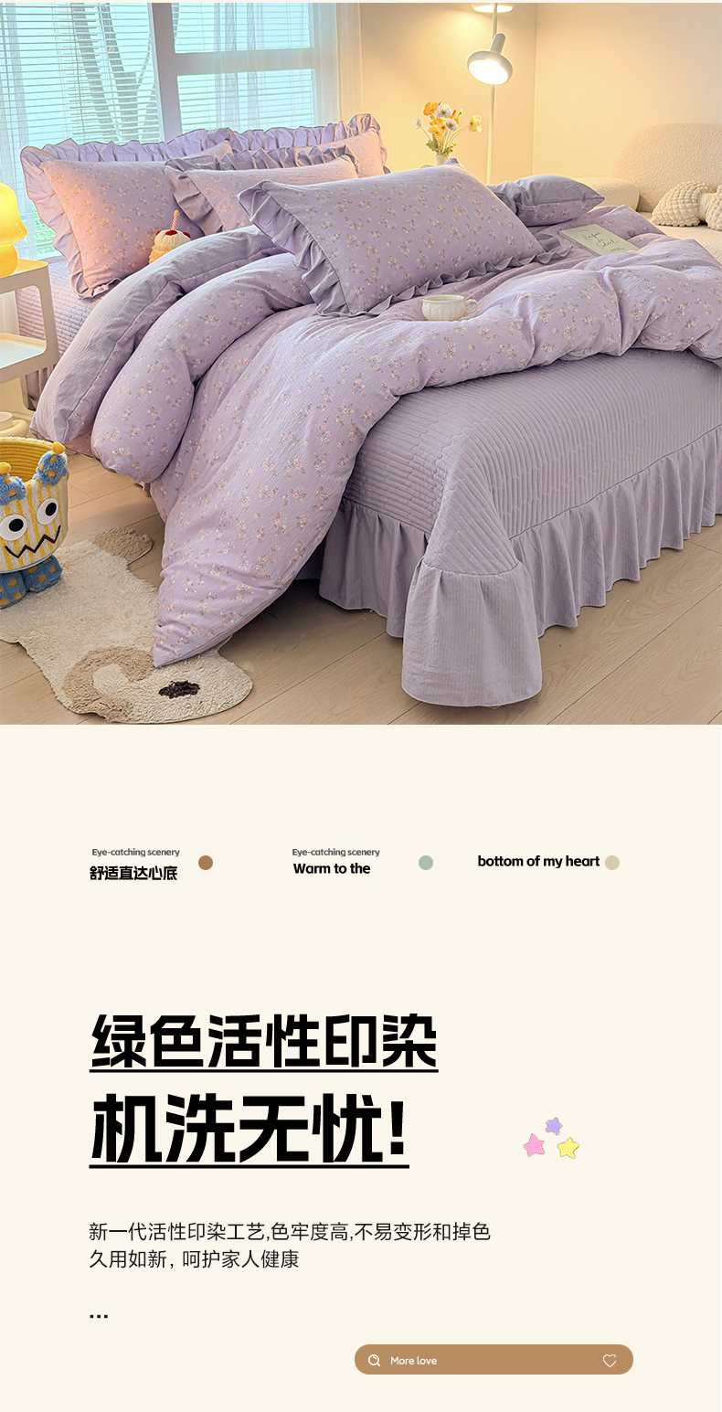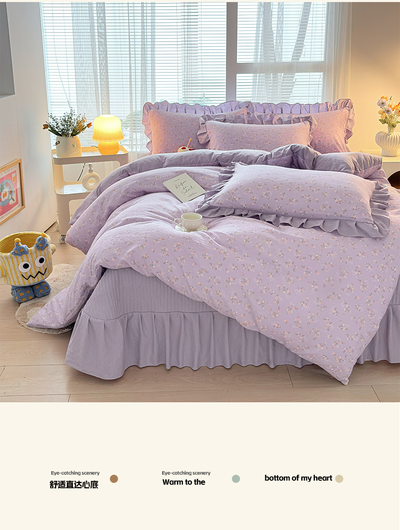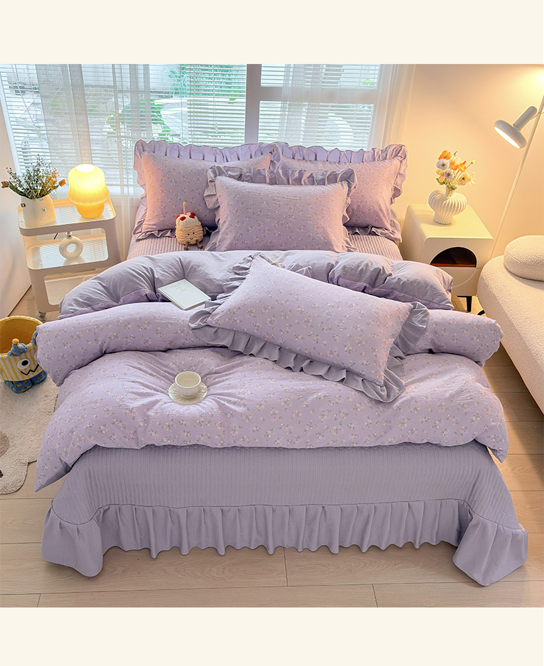畅畅家纺 2026新款春夏小清新泡芙双层纱床盖款四件套 紫梦花语