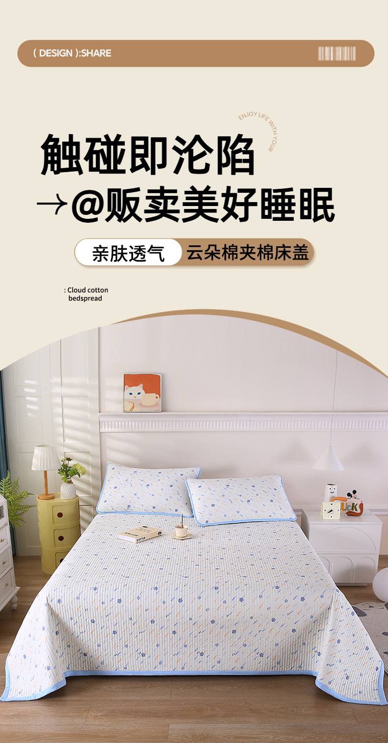 (总)欧朵家纺 2026新款云朵棉夹棉单床盖床盖单件,爱心蝴蝶结,半岛花园,蝴蝶结,流星雨,琉璃花畔,蘑菇花,小象,游乐园