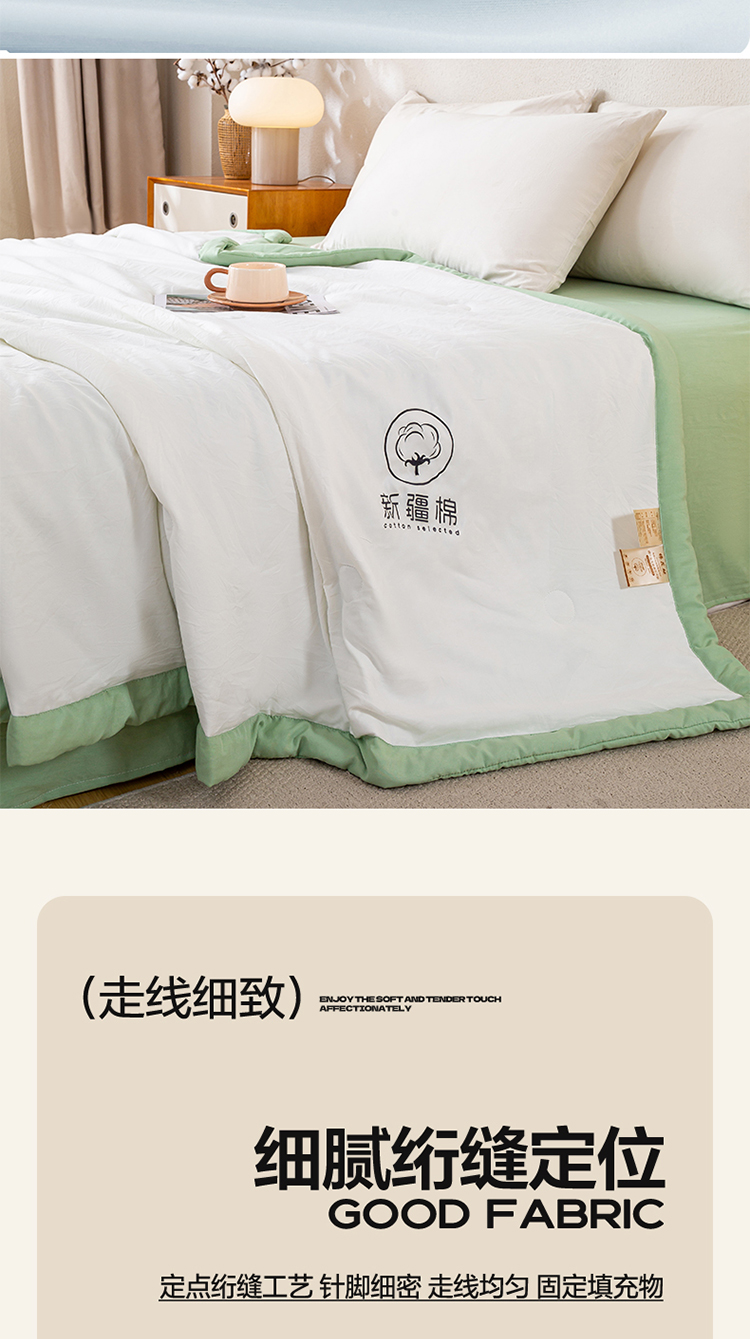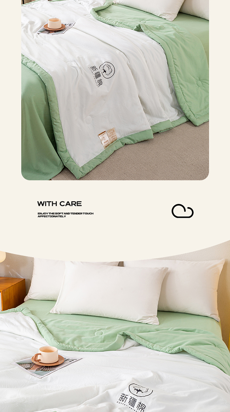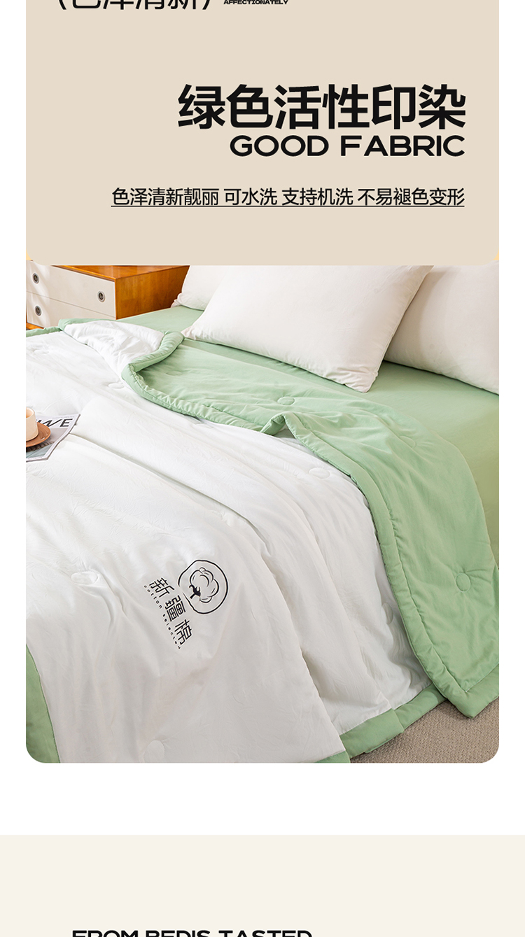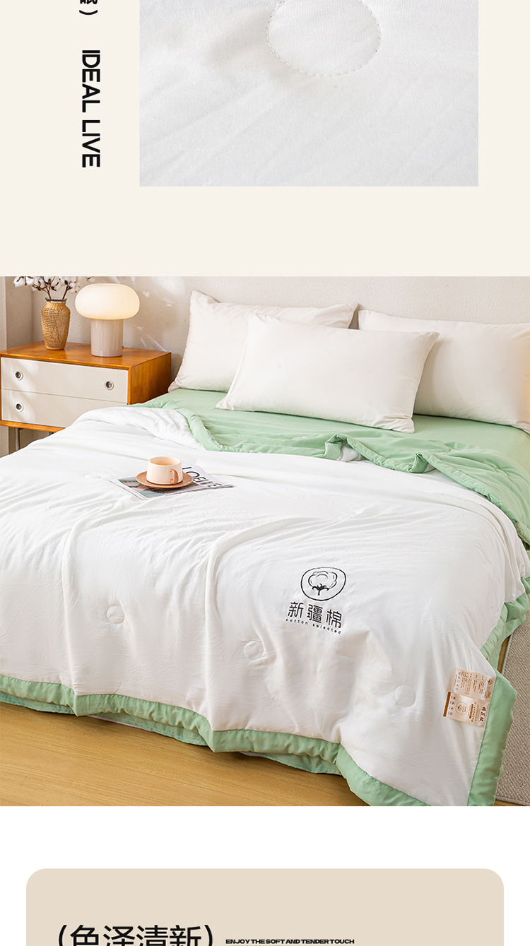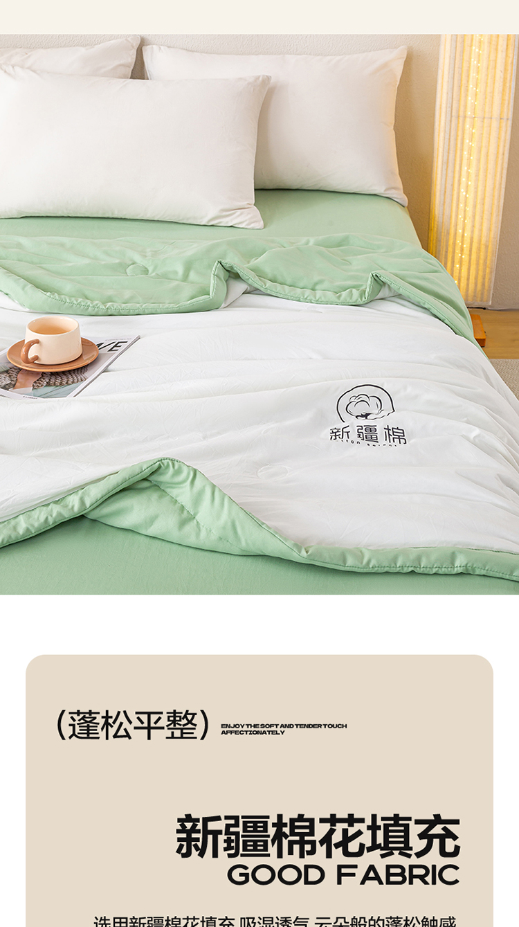 商品名称:2026新款撞色双拼新疆棉花被夏被无印风水洗棉空调被夏凉被子 棉朵-果绿白