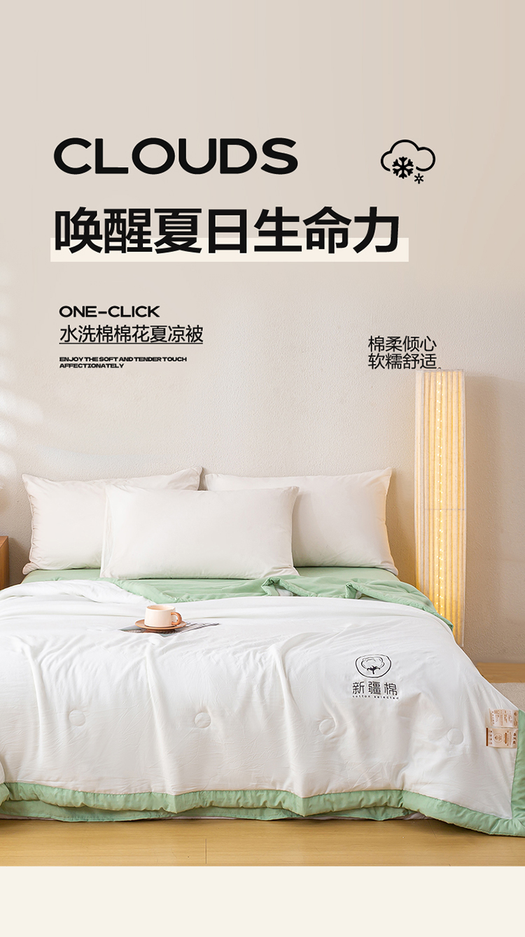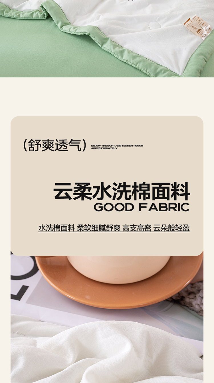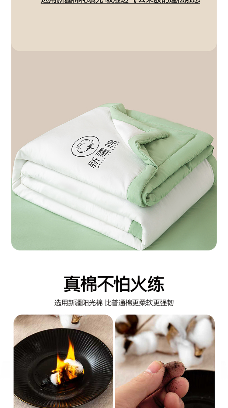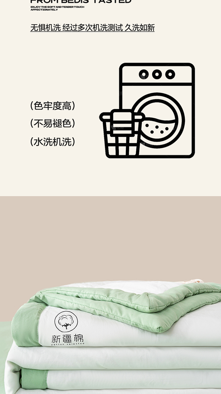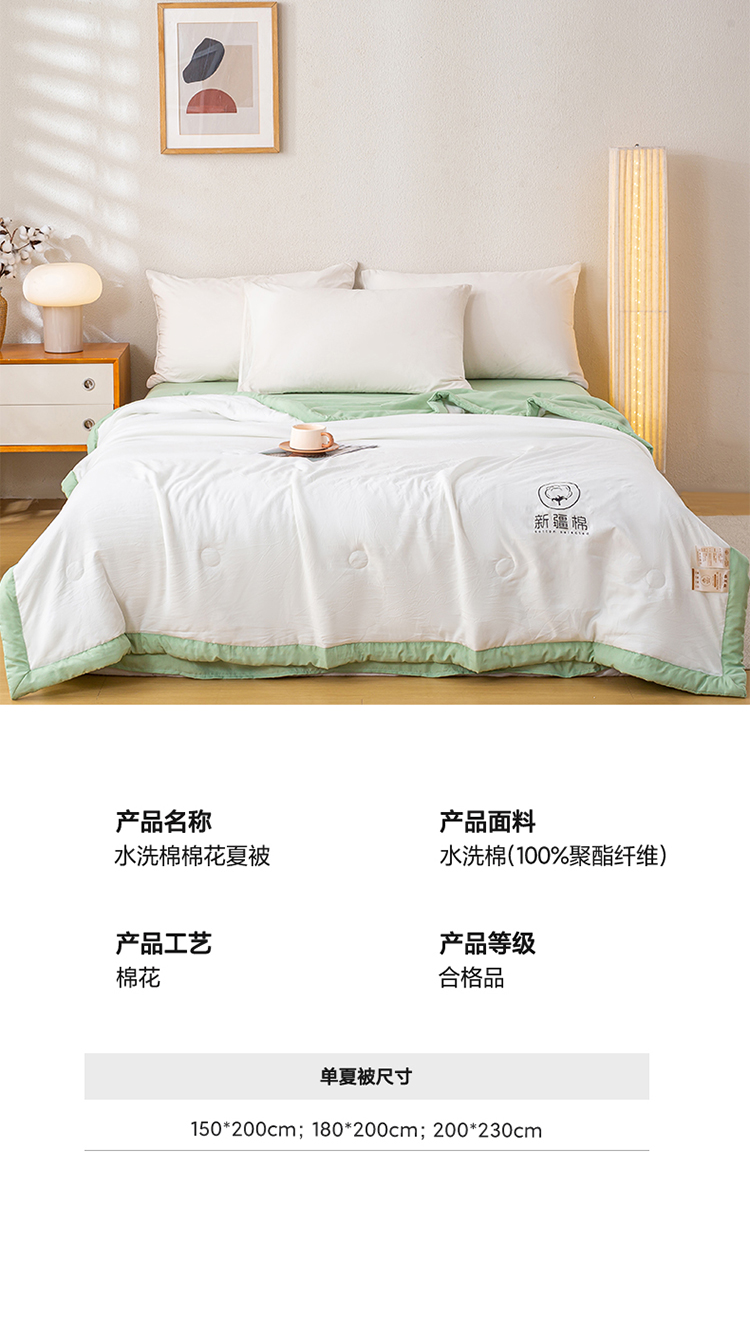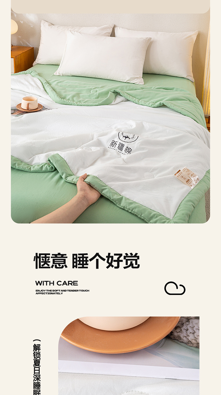 商品名称:2026新款撞色双拼新疆棉花被夏被无印风水洗棉空调被夏凉被子 棉朵-果绿白
