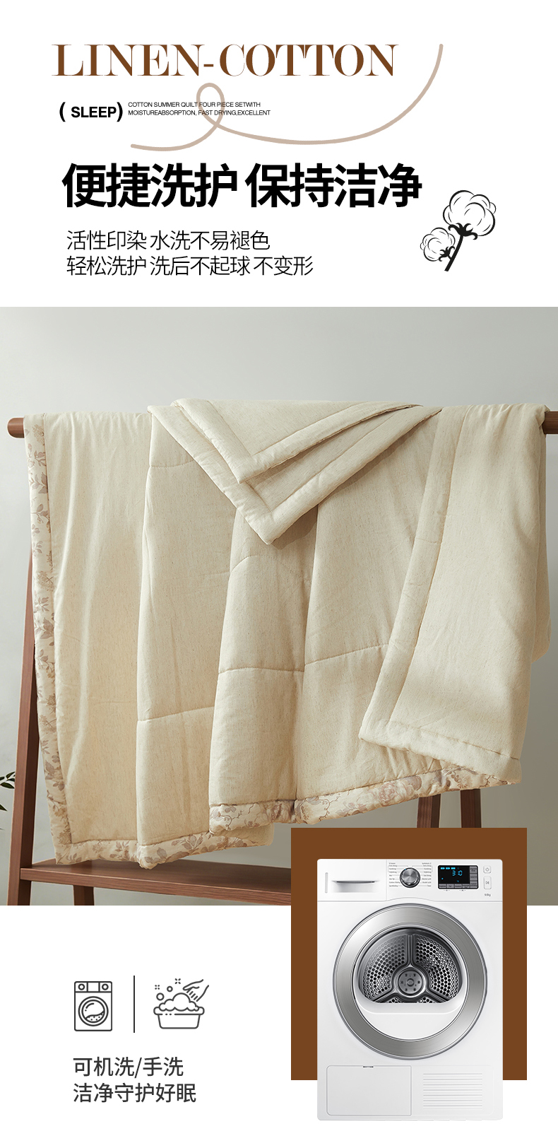 商品名称:西域种棉人·千百笠 2026新款A类棉麻新疆棉花夏被全棉纯棉单双人空调被夏凉被 棉麻-空白诗