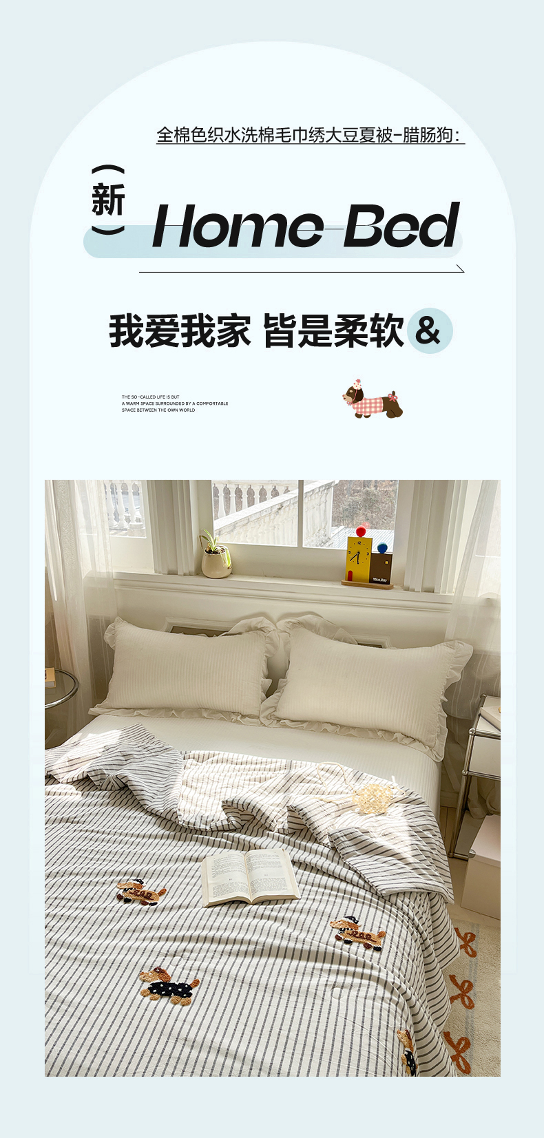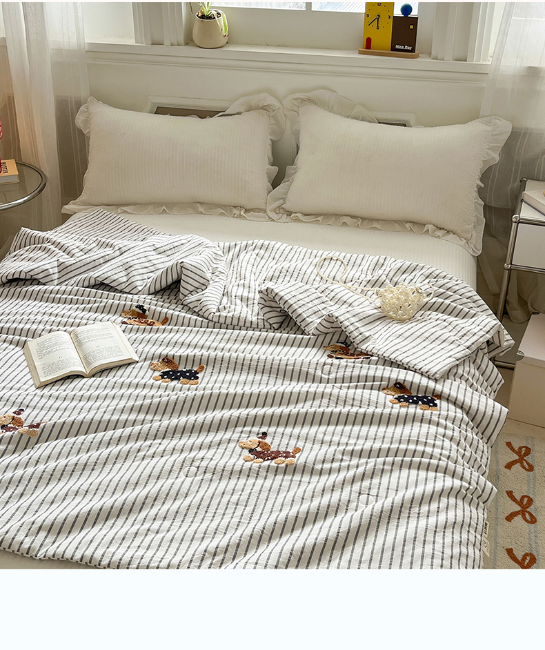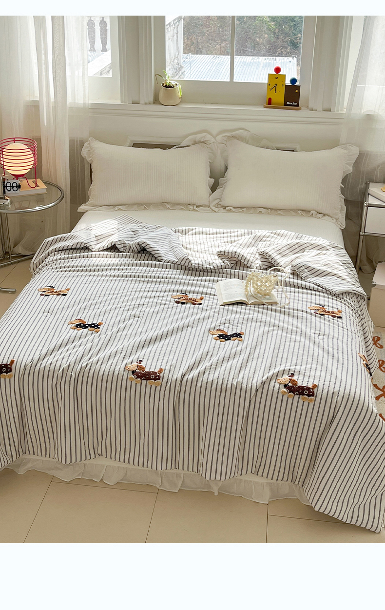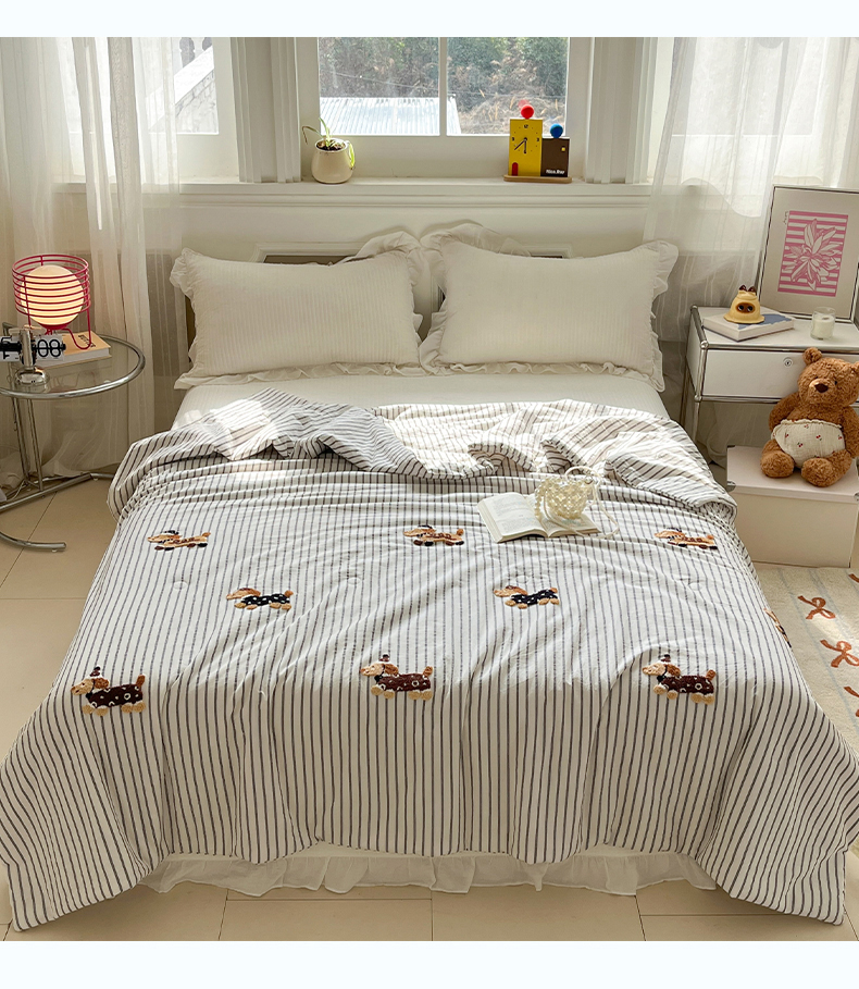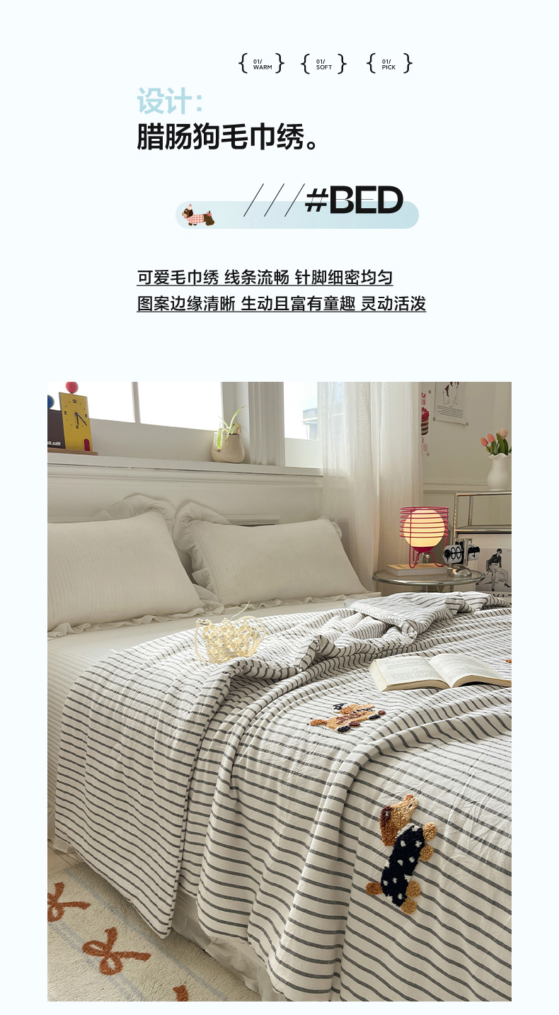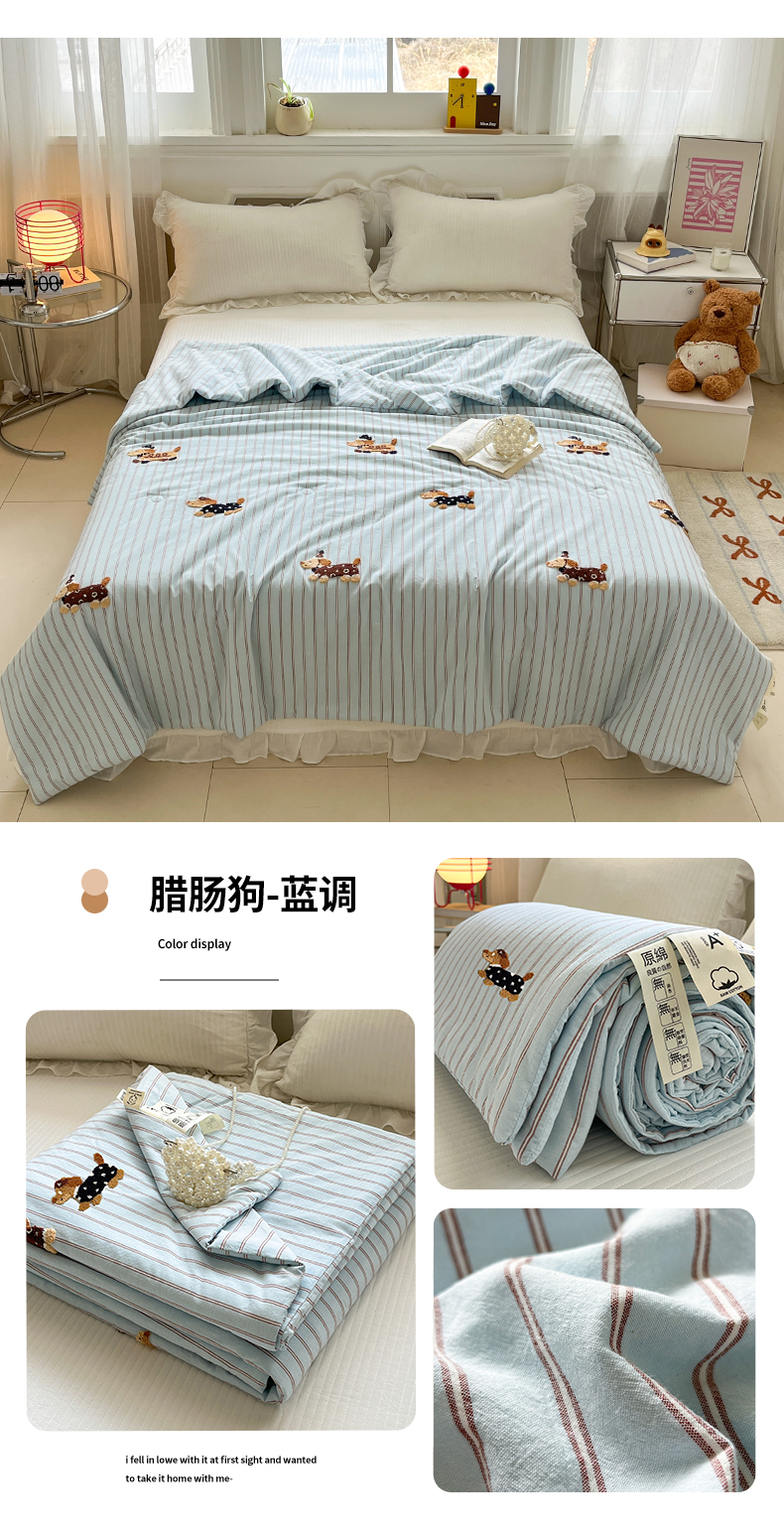 (总)一加一 2026新款全棉色织水洗棉毛巾绣大豆夏被夏凉被空调被-腊肠狗,腊肠狗-粉条,腊肠狗-海盐,腊肠狗-灰条,腊肠狗-蓝调,腊肠狗-奶白,腊肠狗-樱花