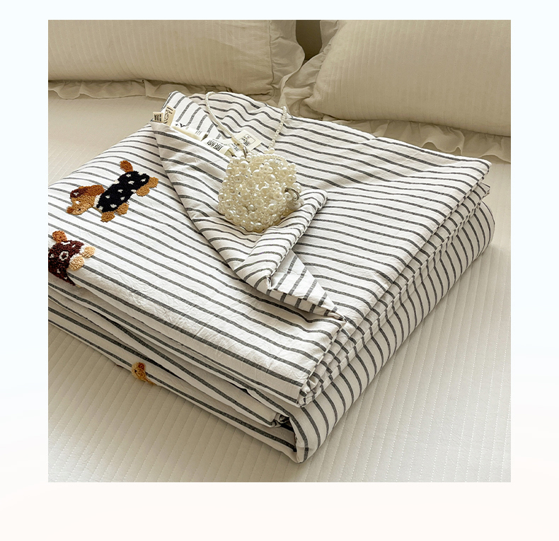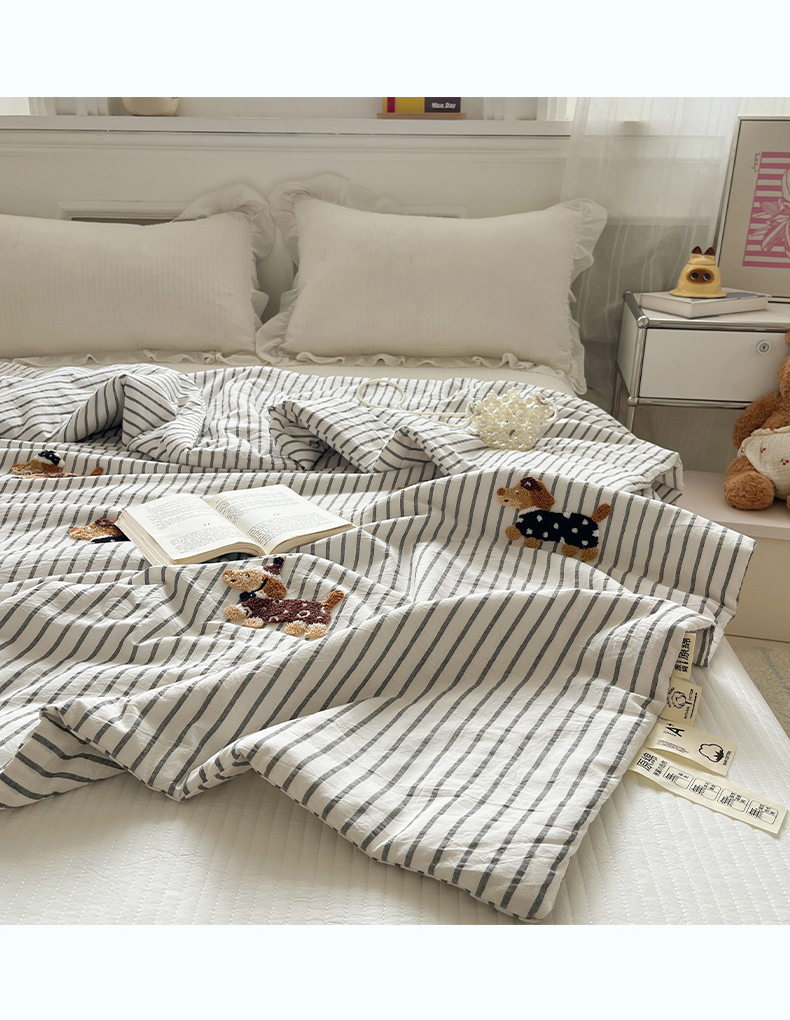 商品名称:一加一 2026新款全棉色织水洗棉毛巾绣大豆夏被夏凉被空调被-腊肠狗 腊肠狗-灰条