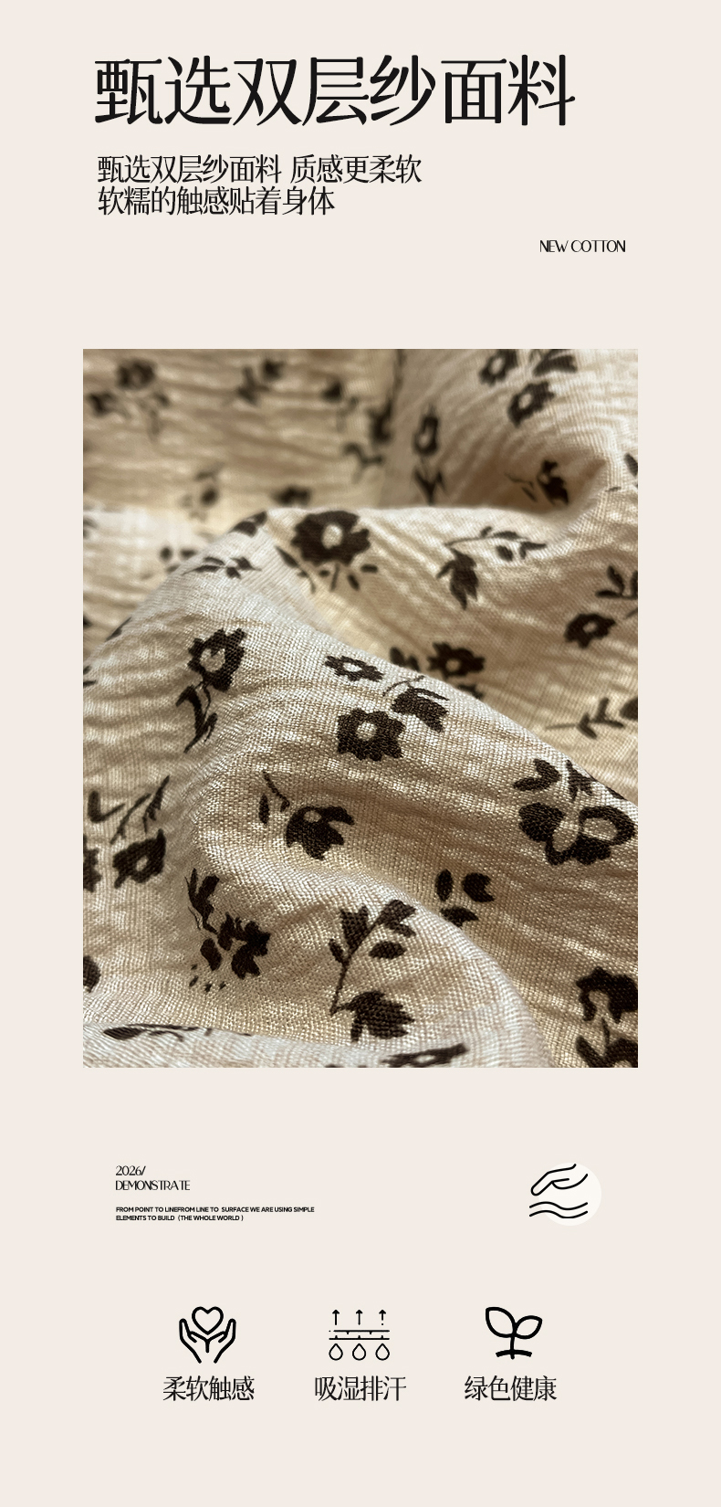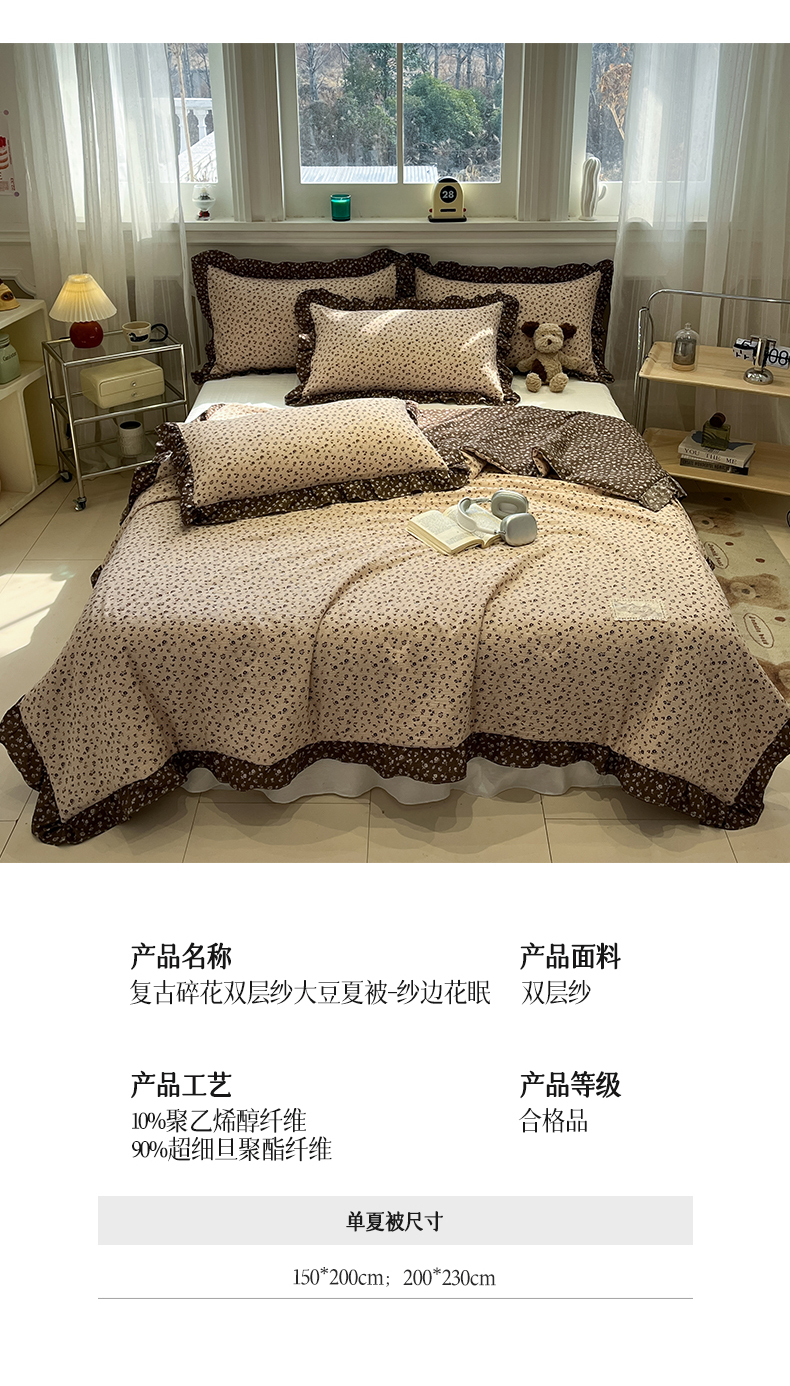 (总)一加一 2026新款复古碎花双层纱大豆夏被夏凉被空调被-纱边花眠,暗香,芬芳,花团锦簇,盛夏,叶影,绽放