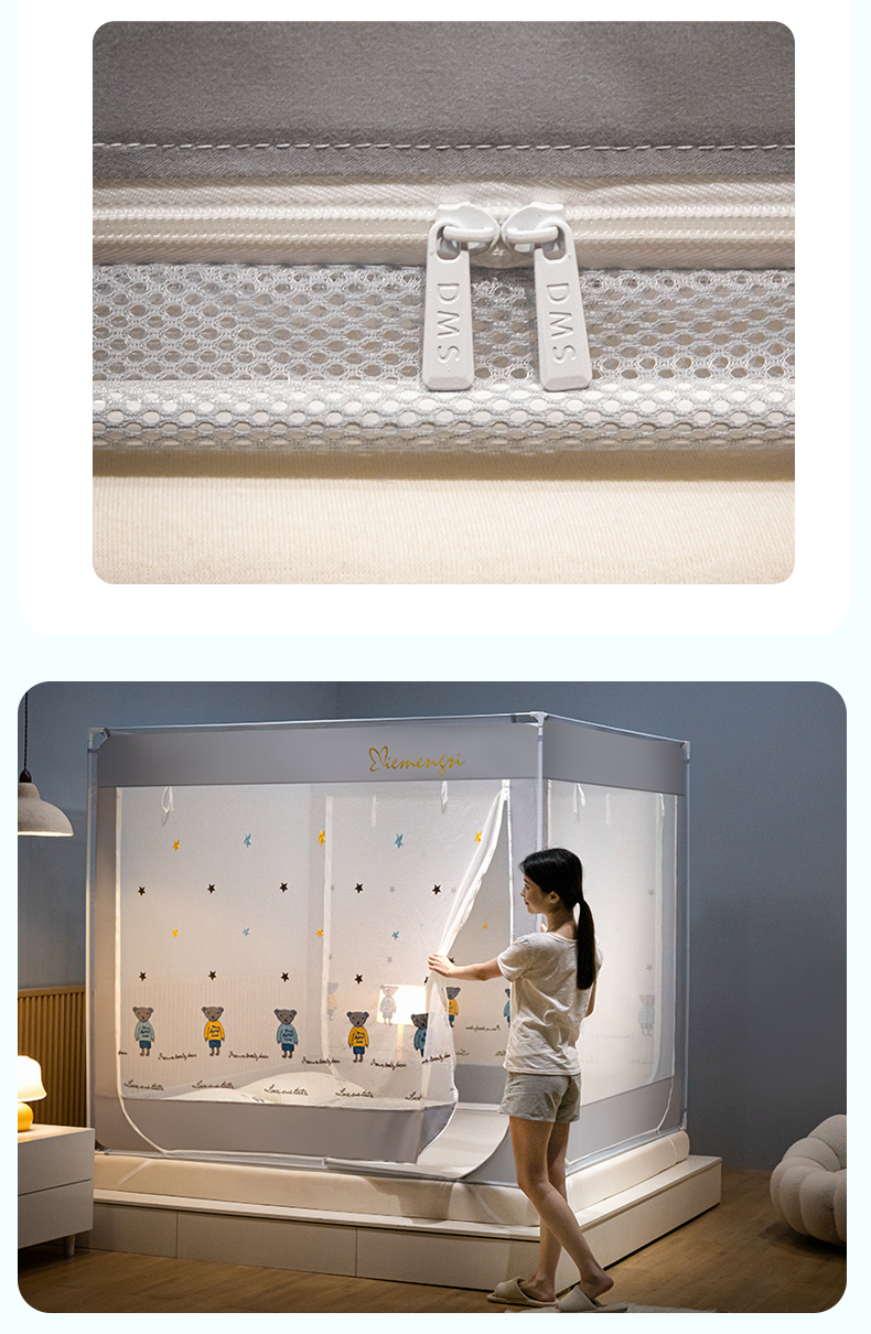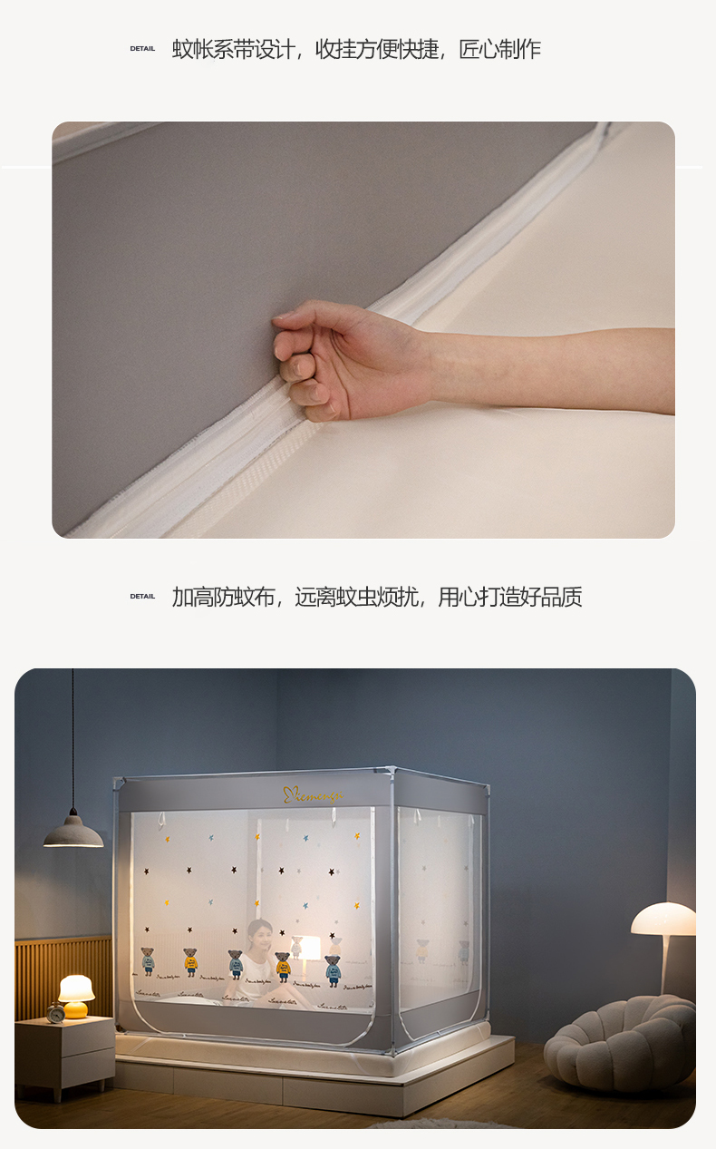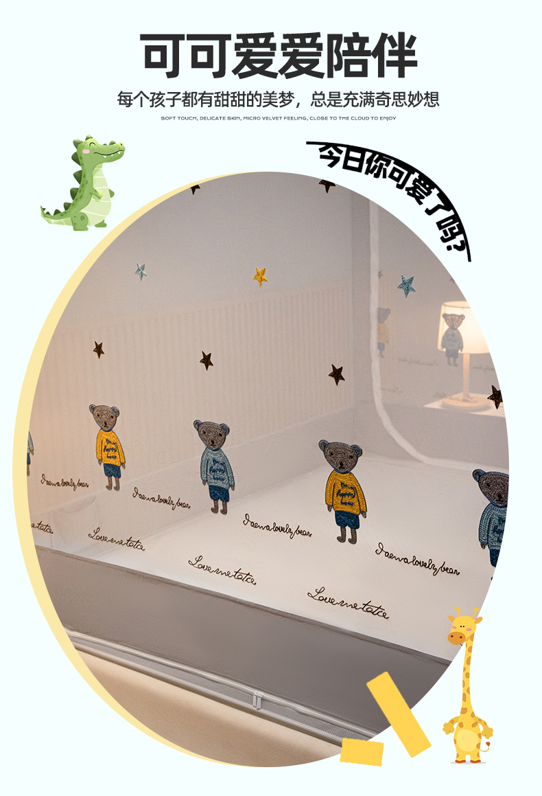 (总)飞轮海蚊帐 2025新款三开门方顶花边防摔遮光蚊帐-Z39,你好蛙,不许动,快乐家族,生活有趣,熊猫宝