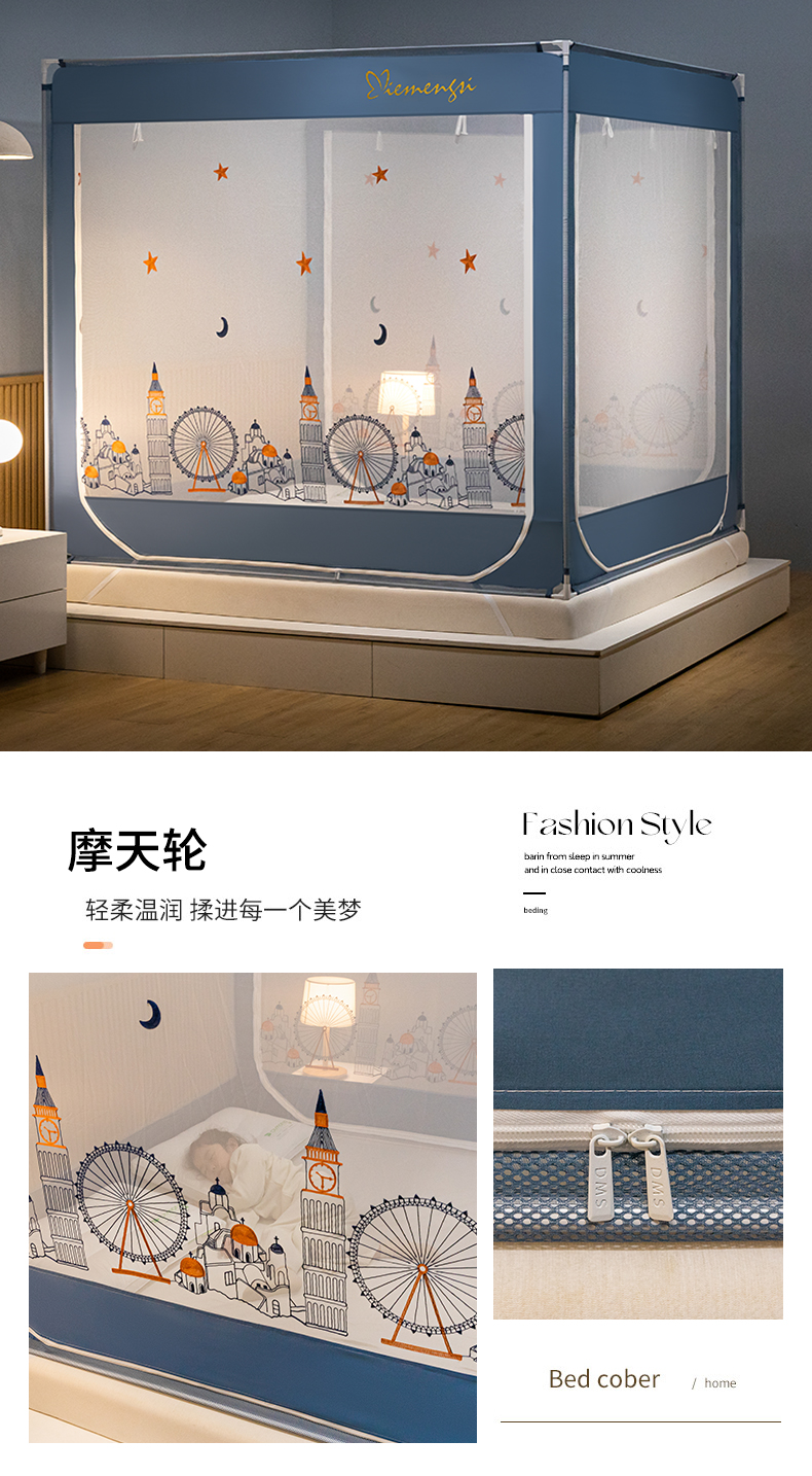 (总)飞轮海蚊帐 2026新款防摔全包防护坐床旗舰款蚊帐-Z72,梦幻,棋盘格,太空人,小熊熊
