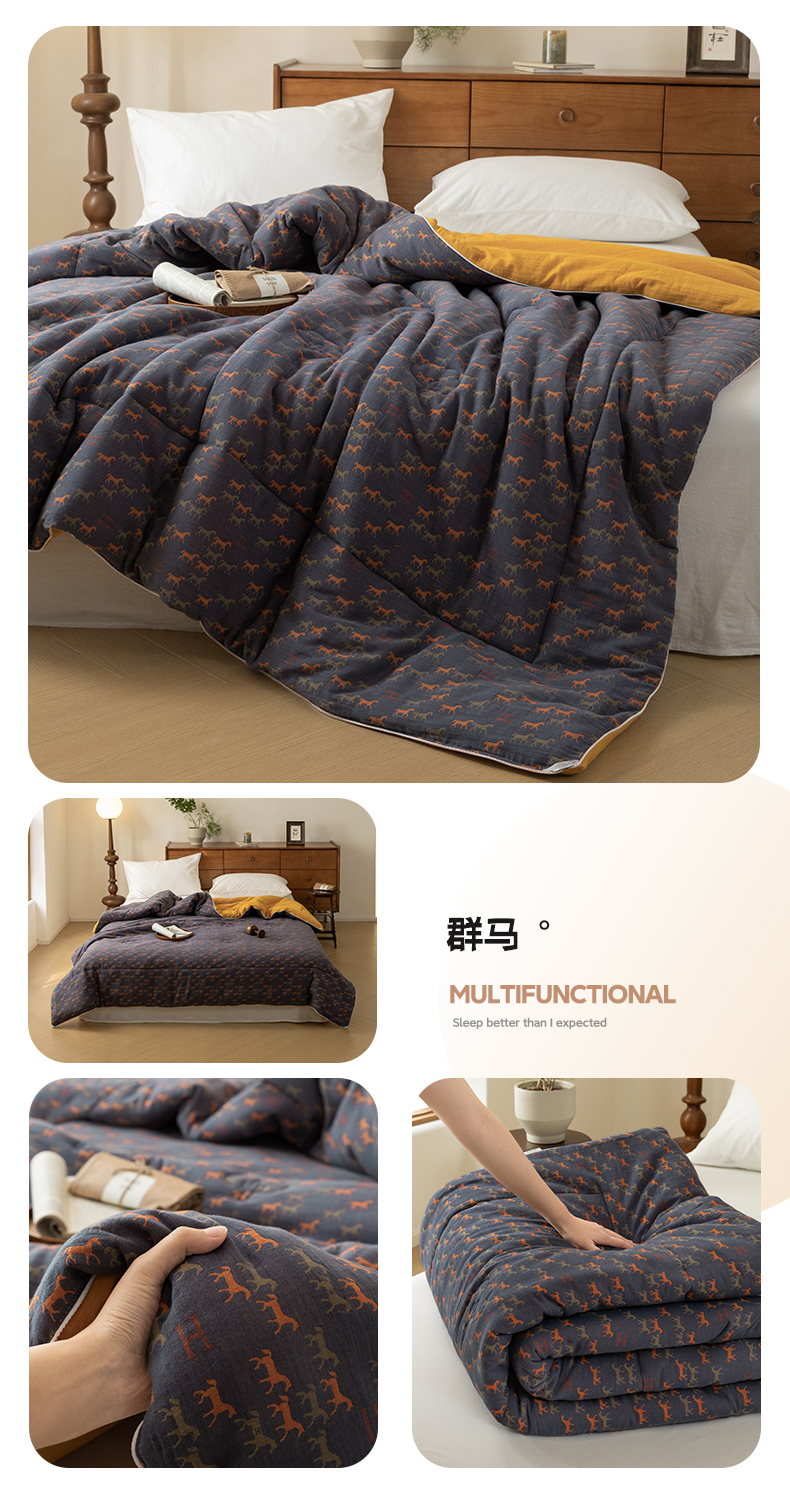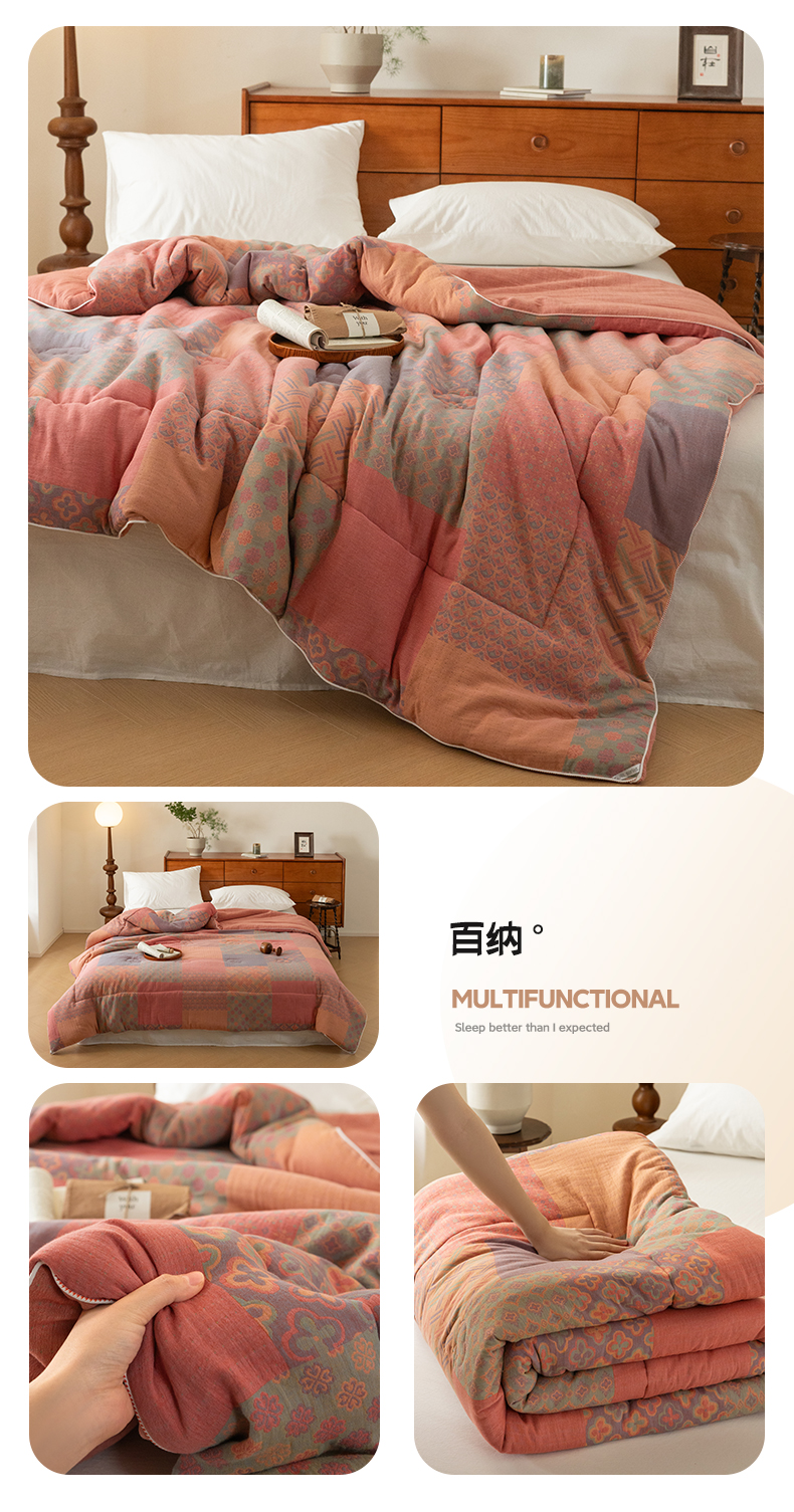 商品名称:睡棉坊 2026新款全棉色织提花双层纱夏被夏凉被空调被 百福