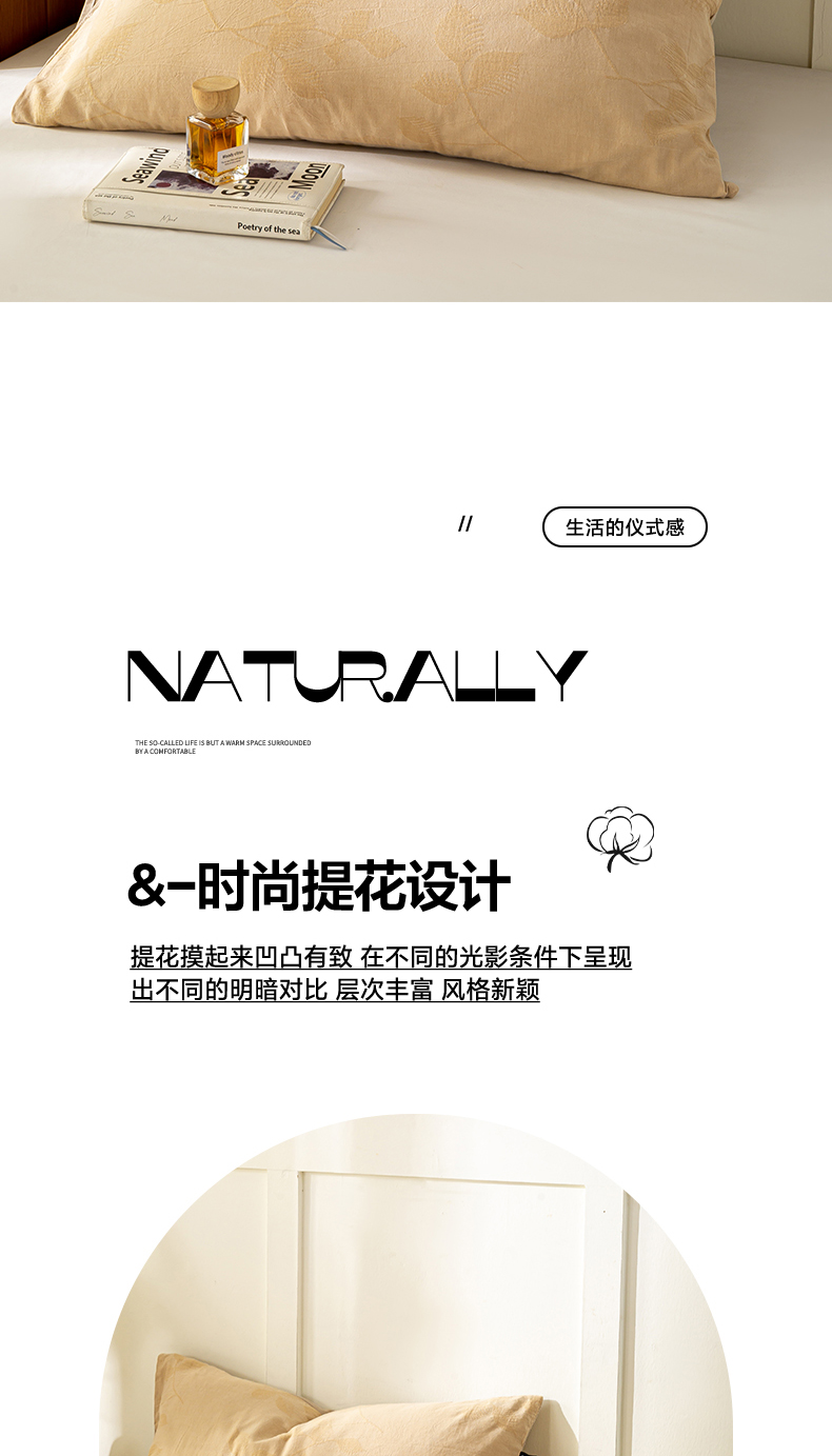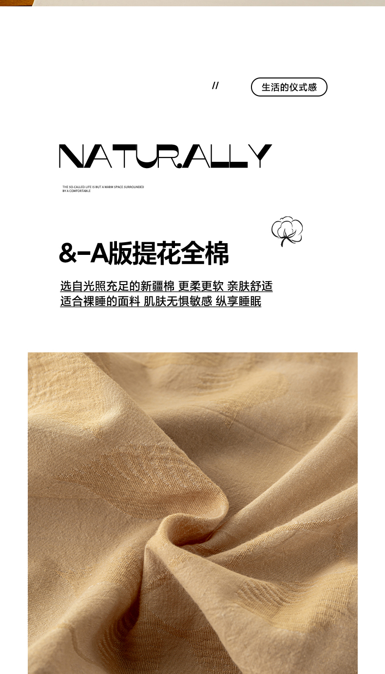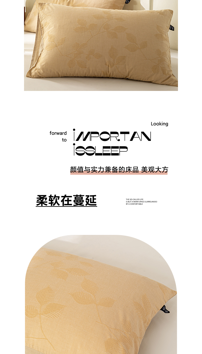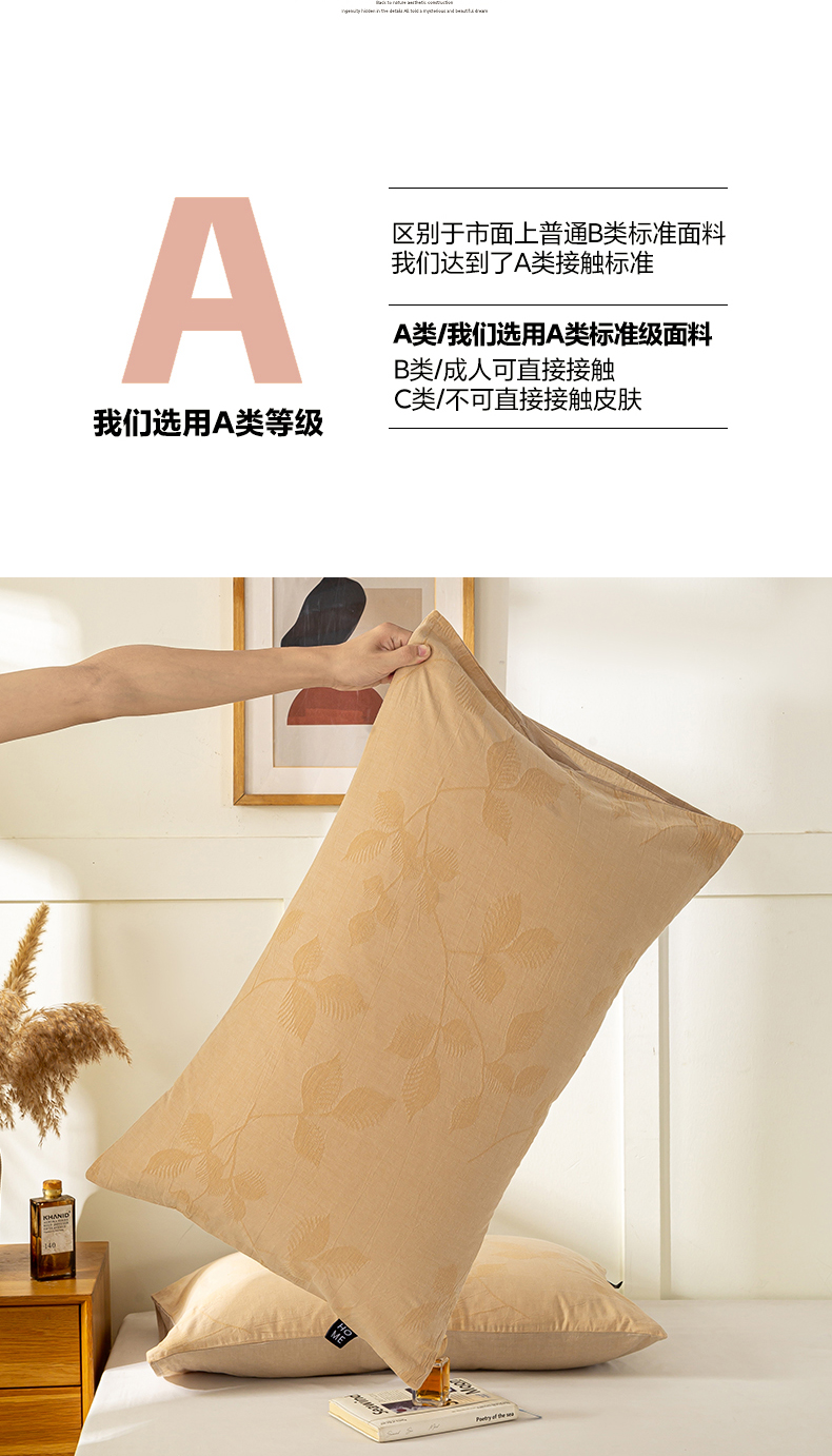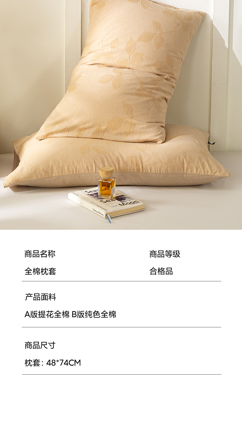 商品名称:恋人优选 2026新款全棉提花枕套 樱花叶-卡其