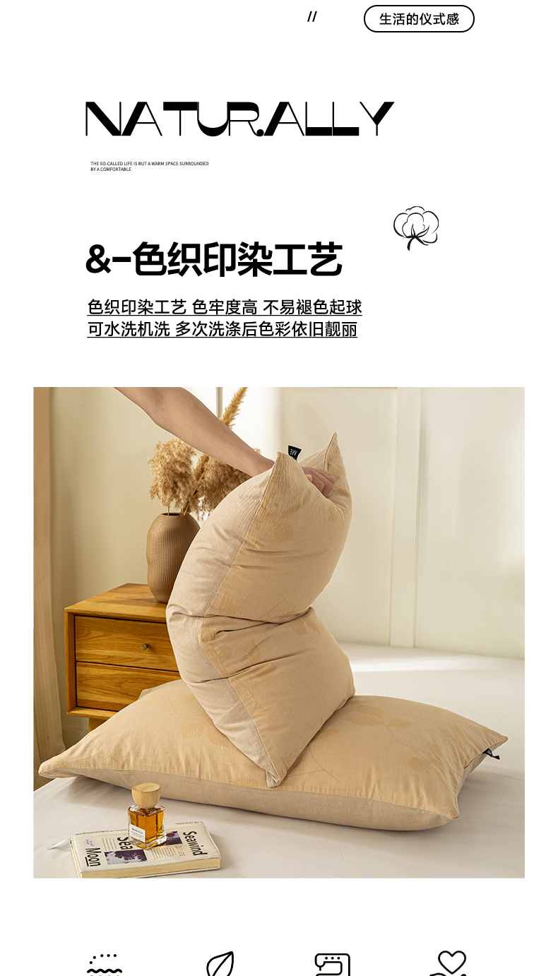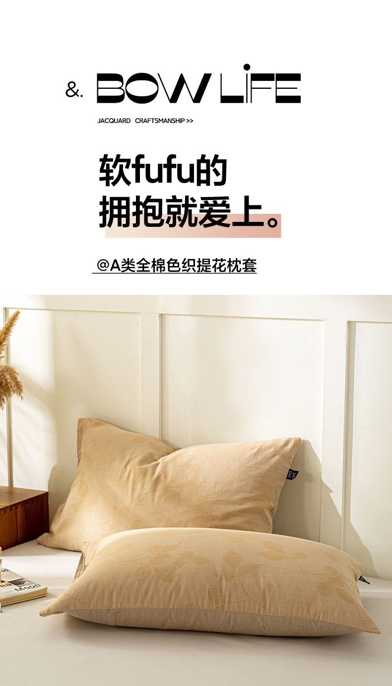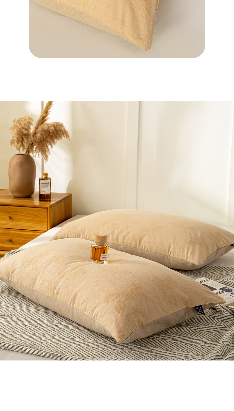 恋人优选 2026新款全棉提花枕套 樱花叶-卡其