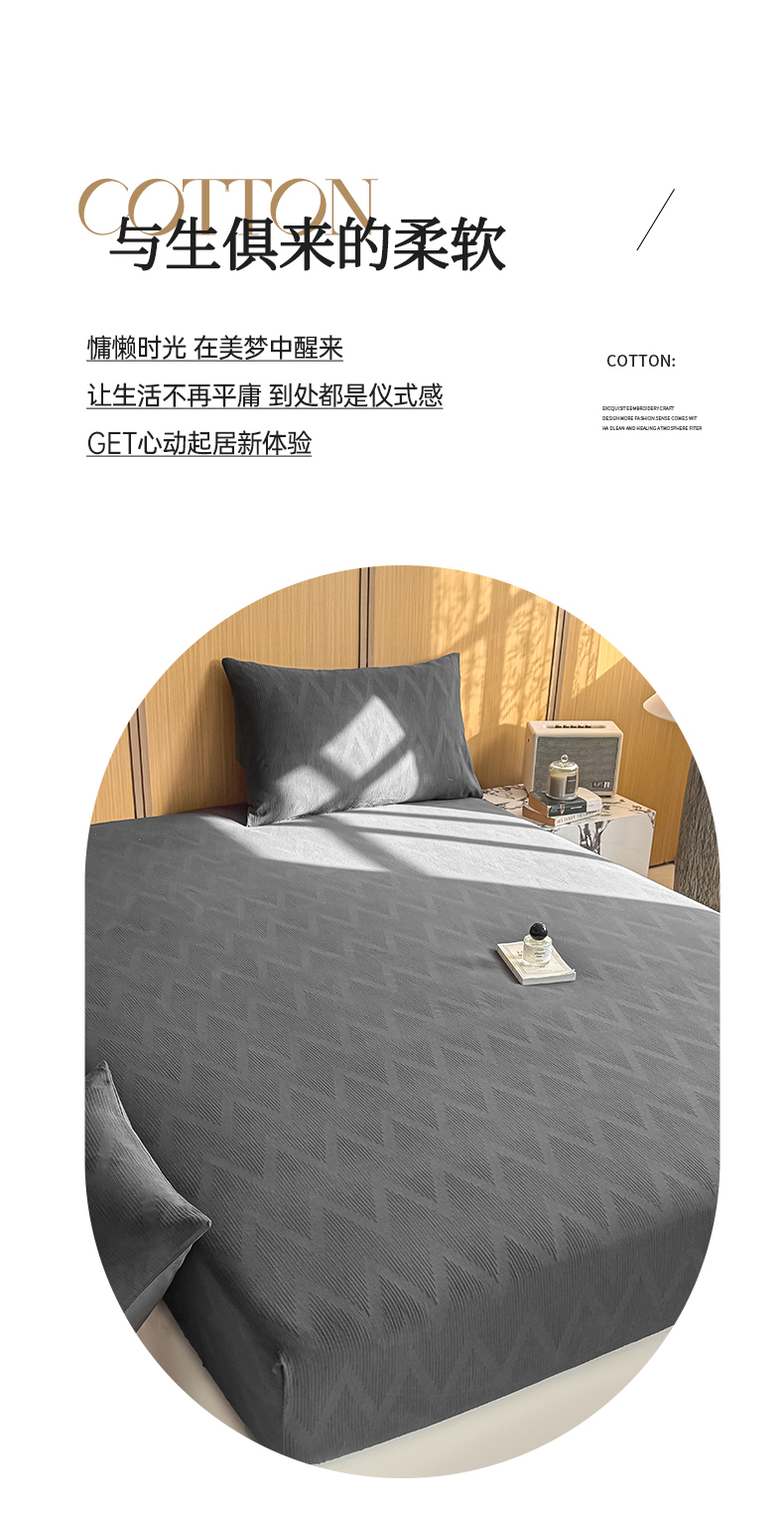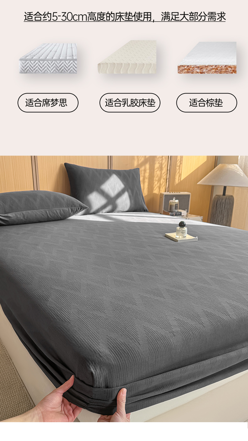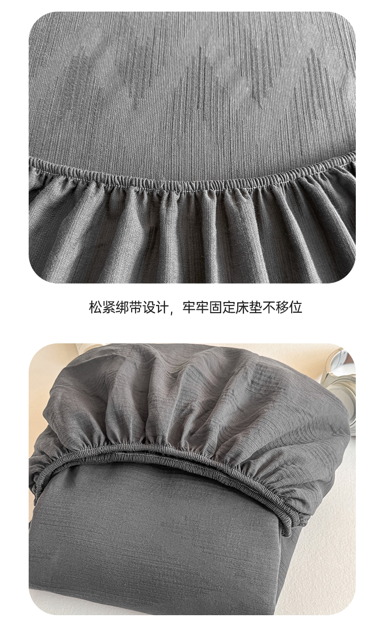 灰鲸 2026新款全棉纯棉三层纱色织提花床笠单品床笠床笠单件 影韵-素墨