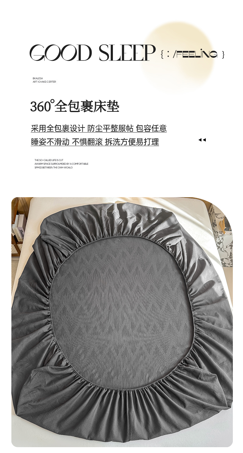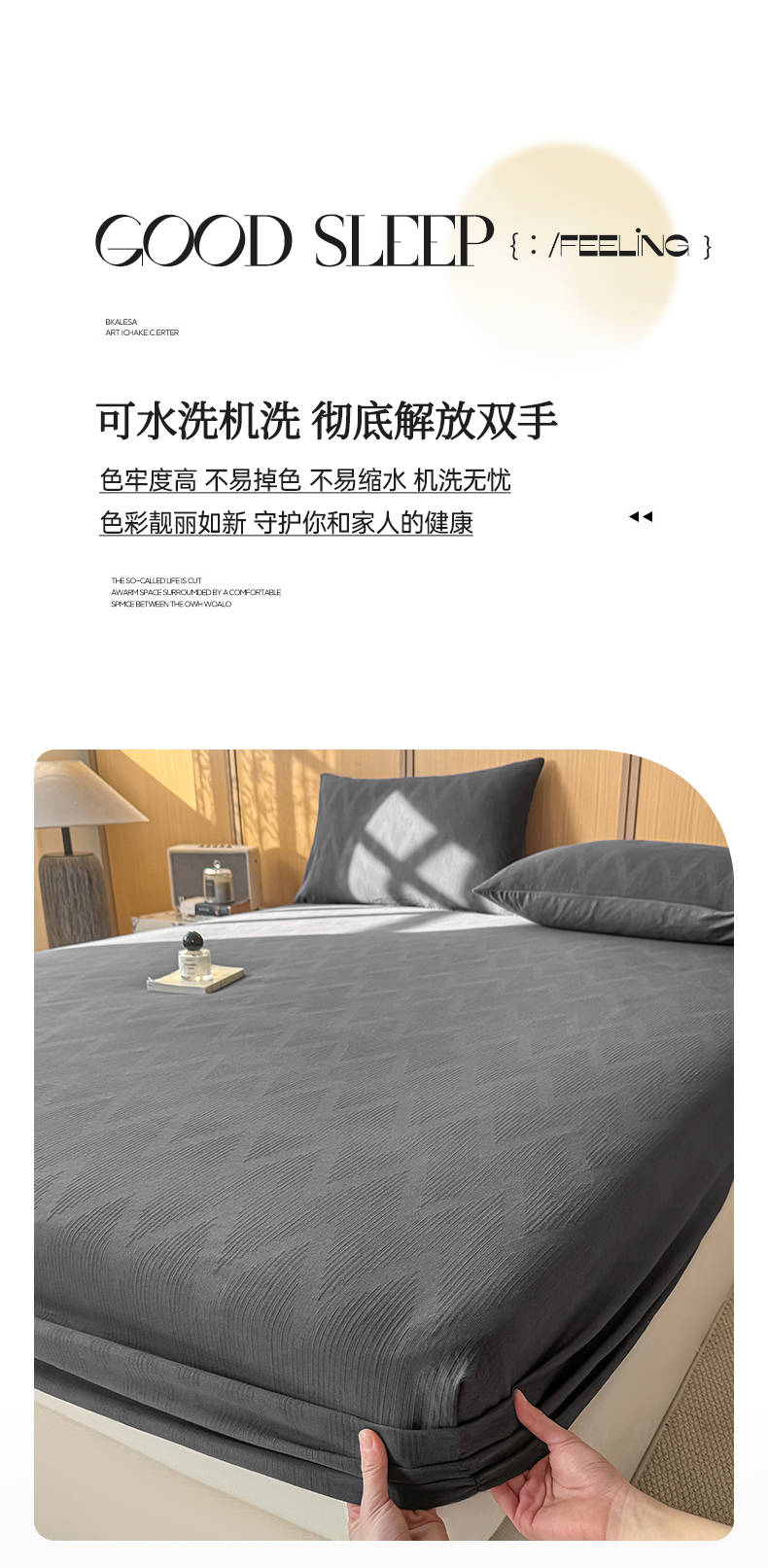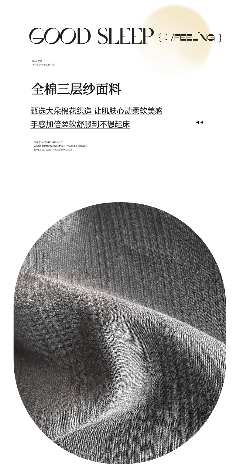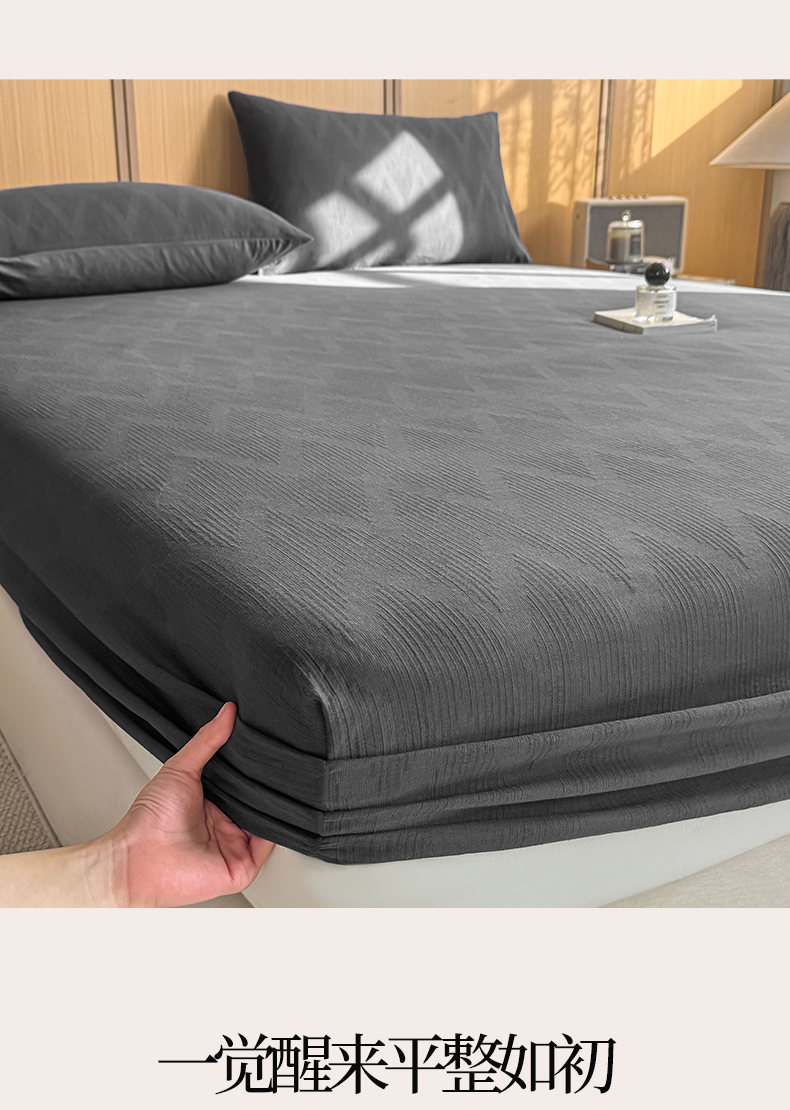 • 91家纺网 家纺一手货源 找家纺 灰鲸 2026新款全棉纯棉三层纱色织提花床笠单品床笠床笠单件 影韵-素墨