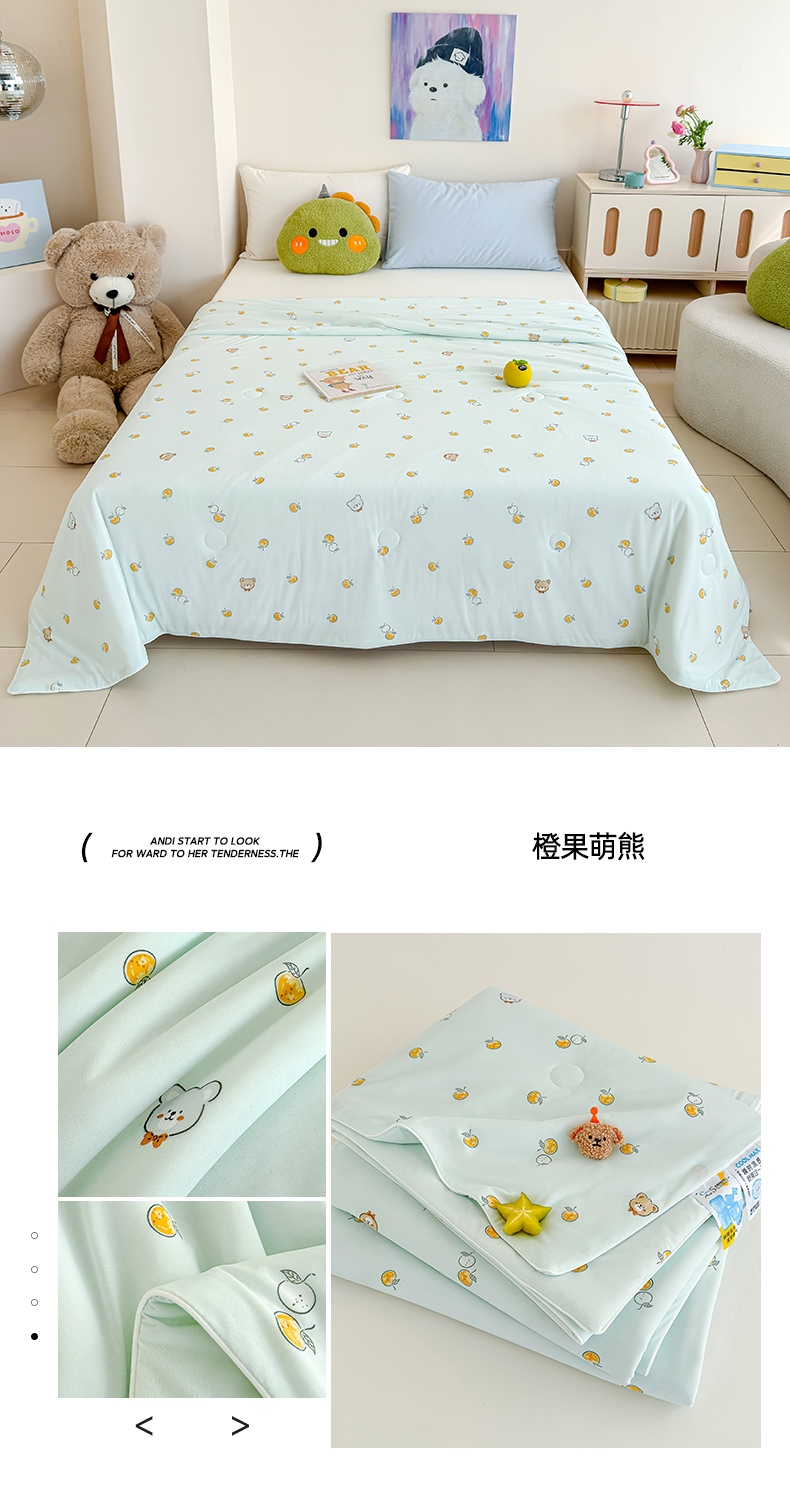 商品名称:芯恋家居 2026年新款小冰川凉感夏被冰皮凉感印花夏被凉感丝夏被(四周踩棉工艺) 橙果萌熊