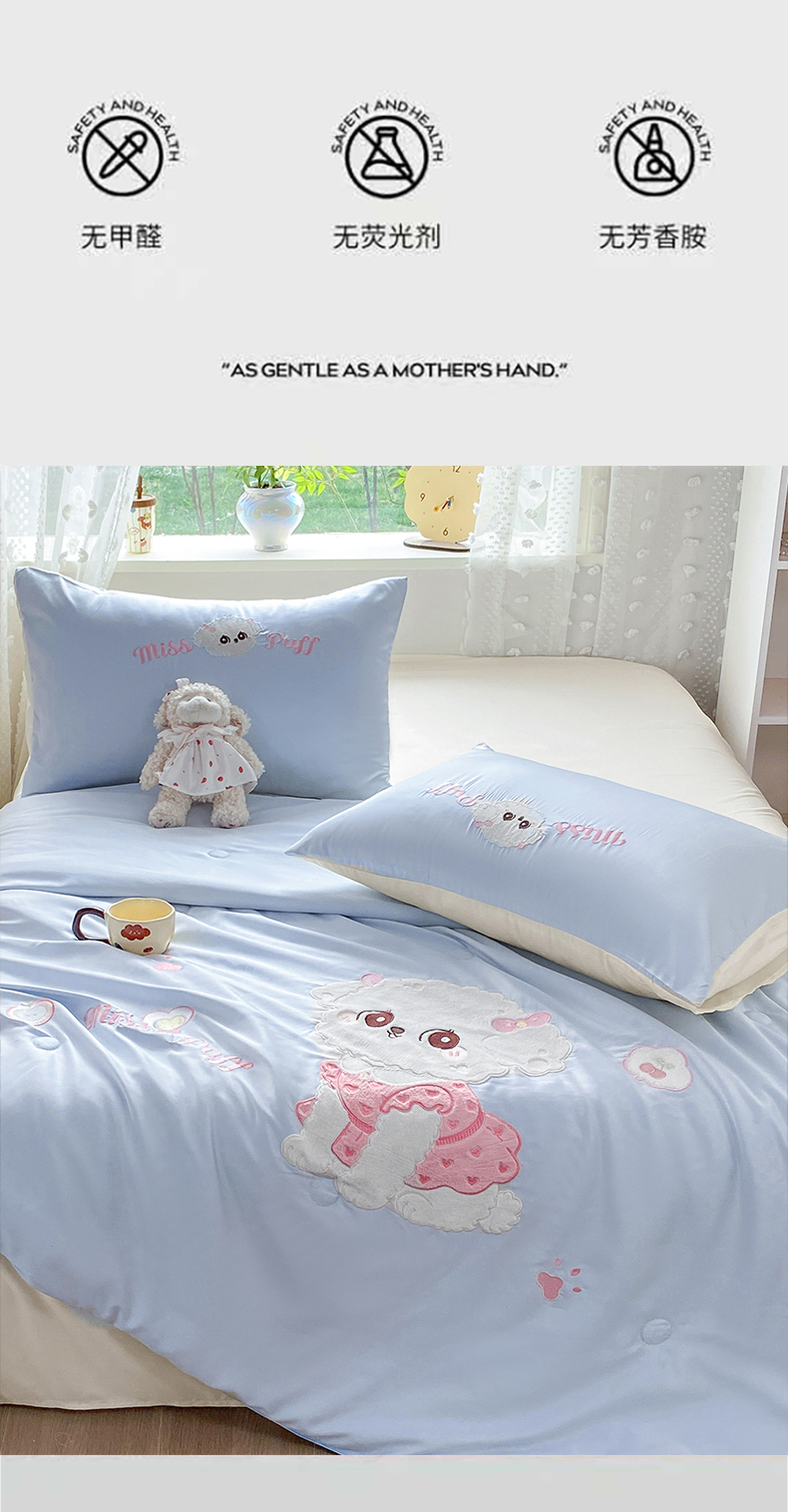 (总)绒棉世家 2026新款水洗天丝冰天丝专版贴布绣夏被四件套系列,蝴蝶结,白色布偶猫,粉色布偶猫,魔法猫,奶蓝兔仔,泡芙奶狗,绅士小熊,组合