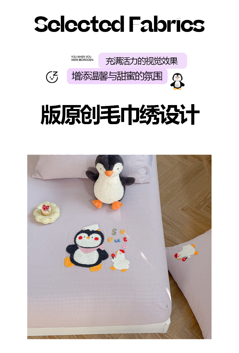 (总)暖生活 2026新款兔绒贴布绣牛奶绒套件四件套(会员-5),小泰迪,红围巾小狗,线团小猫,泳圈企鹅