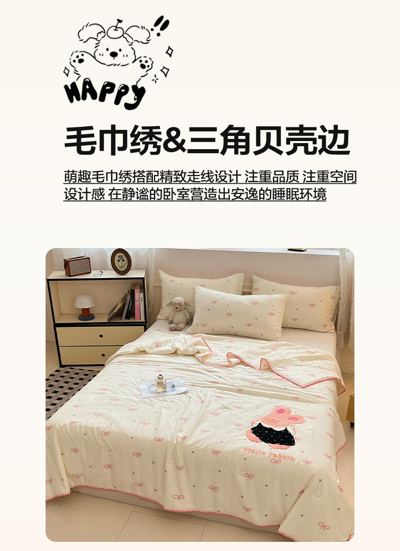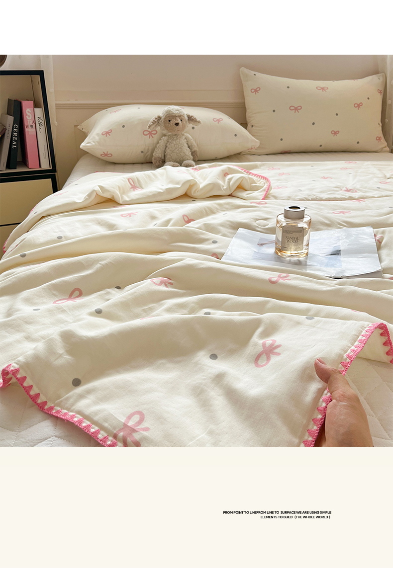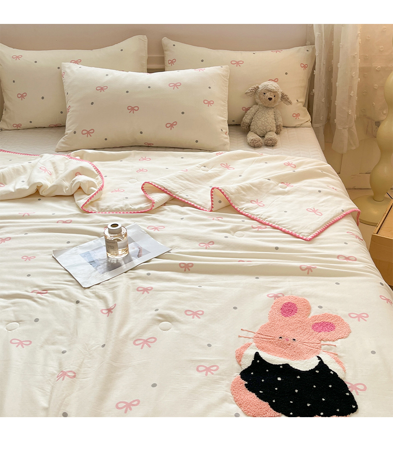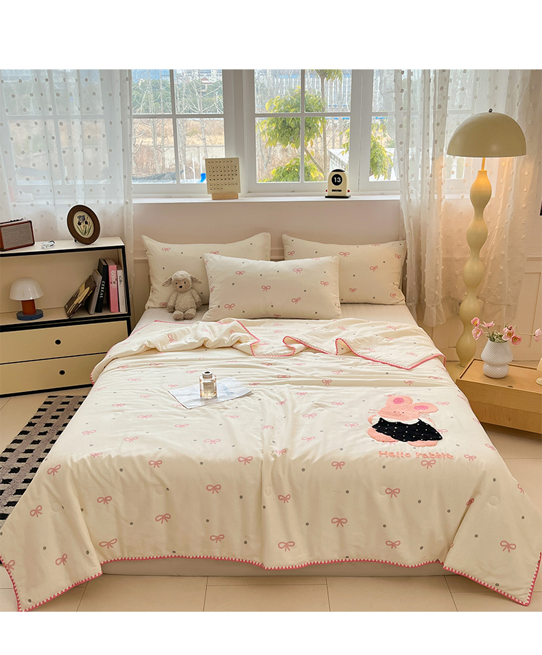 商品名称:一加一 2026新款全棉双层纱卡通毛巾绣大豆夏被夏凉被空调被-卡通生活 蝴蝶结小兔