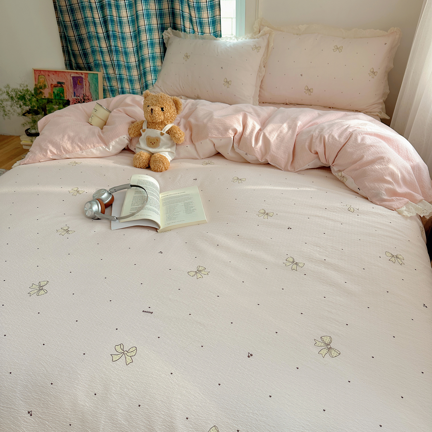 (总)仟网汇 2026新款云感泡芙棉小清新印花贝壳边四件套,豹纹凯蒂,蛋糕星人,费尔岛小狗,哈喽星人,黑白蝴蝶,萌趣小马,萌趣小熊,青涩樱桃,诗意柔,小汽车,摇摇星人,樱桃波点