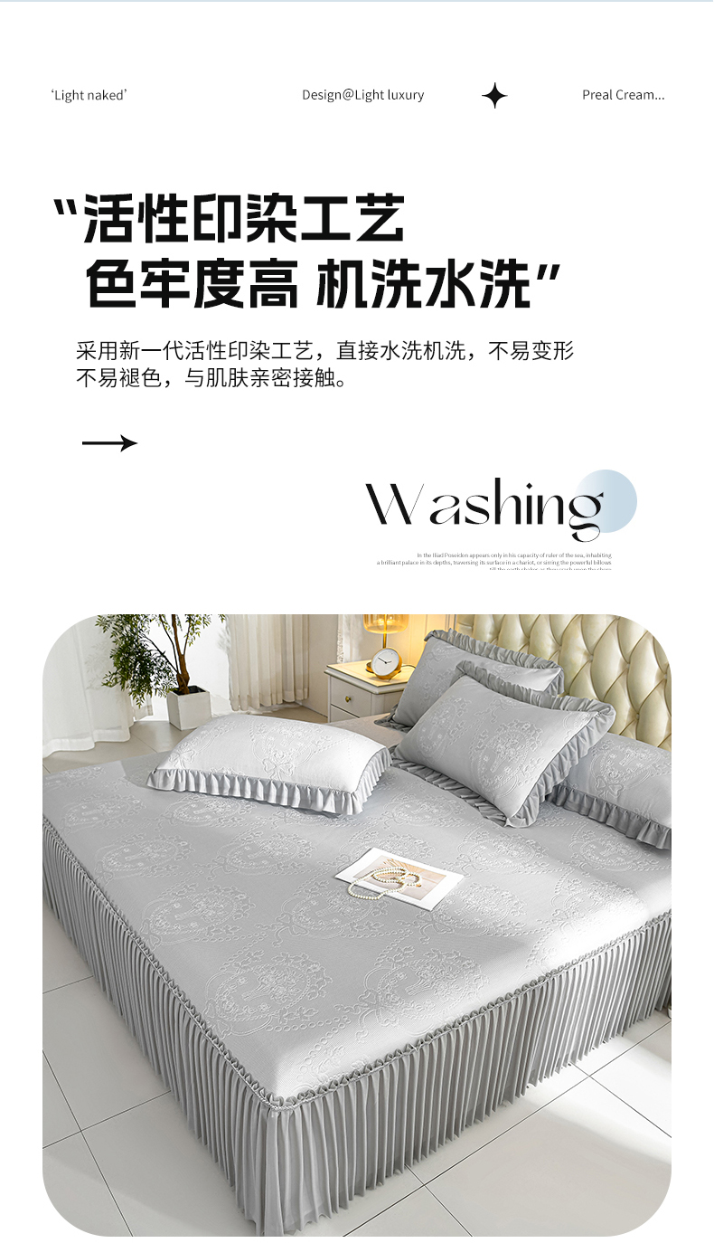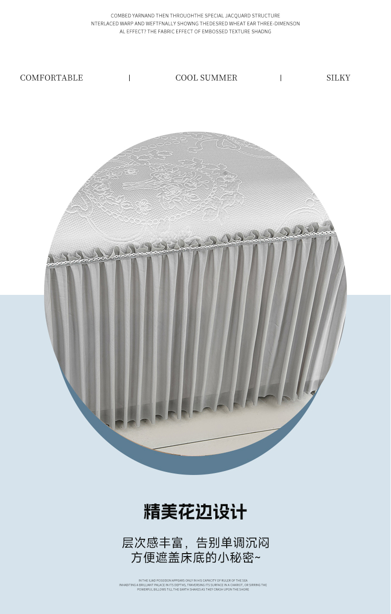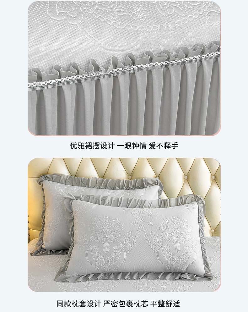 商品名称:2026新款PE聚乙烯中分子凉感冰感凉豆豆床裙三件套欧式-灰