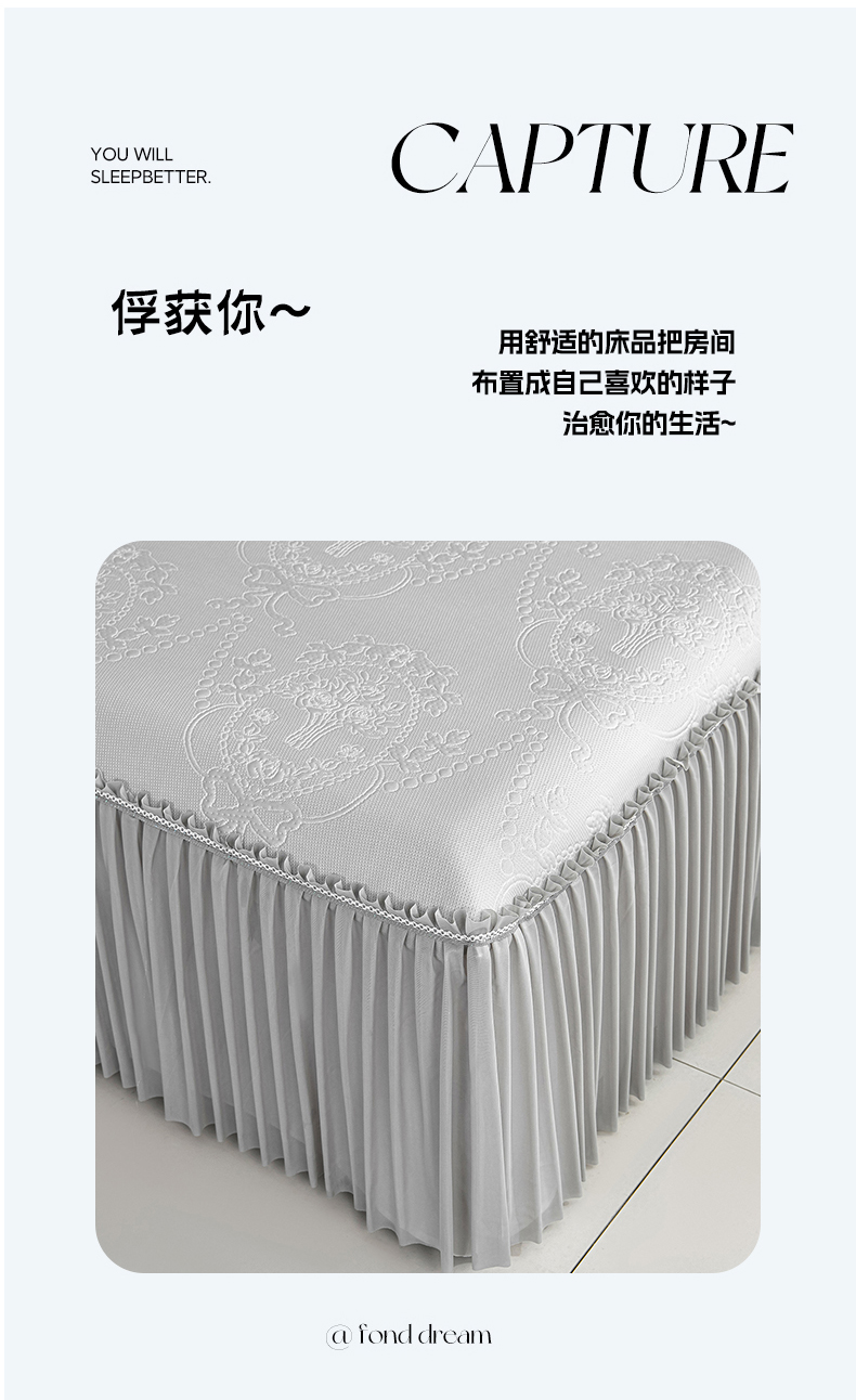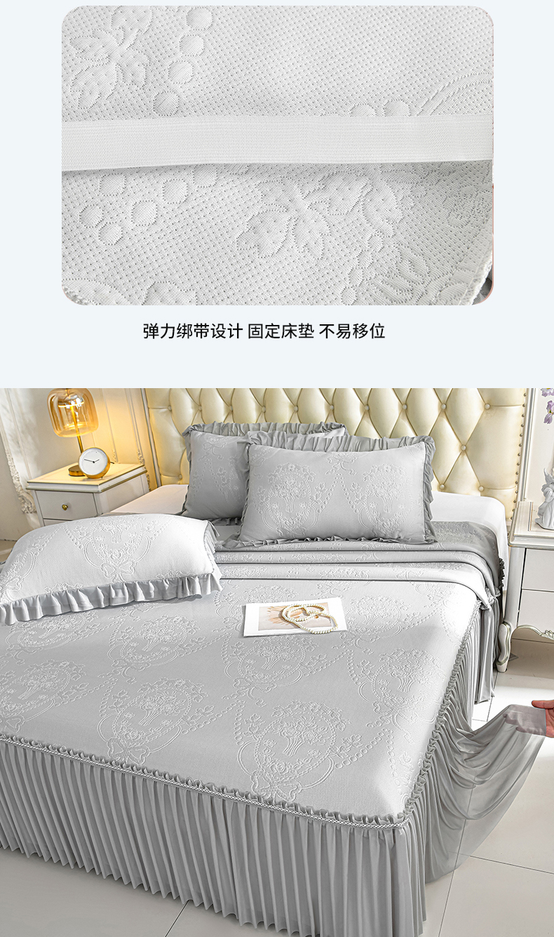 (总)梦之星 2026新款提花面料530克PE凉感因子冰豆豆床裙三件套,漫花-粉,漫花-灰,漫花-蓝,漫花-绿,山水-粉,山水-灰,山水-蓝,山水-绿