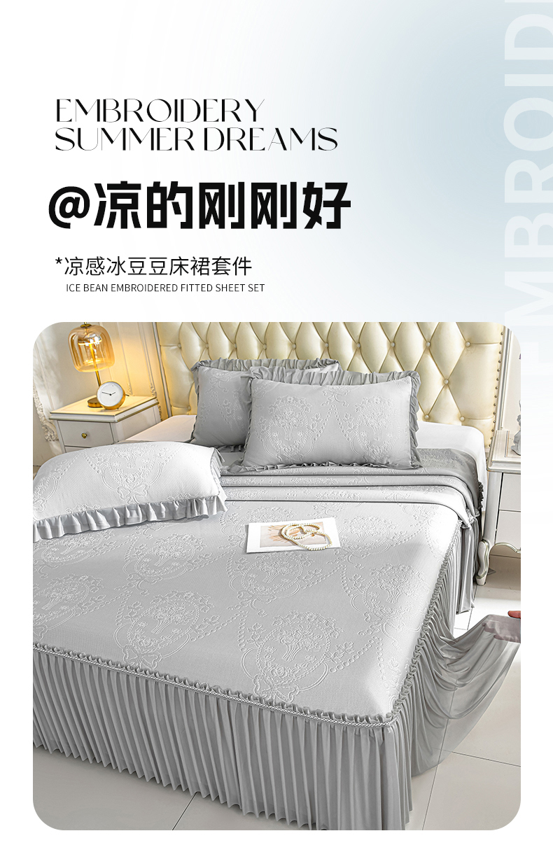 2026新款PE聚乙烯中分子凉感冰感凉豆豆床裙三件套欧式-灰,欧式-灰