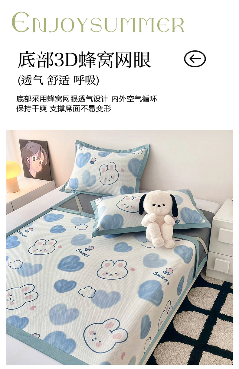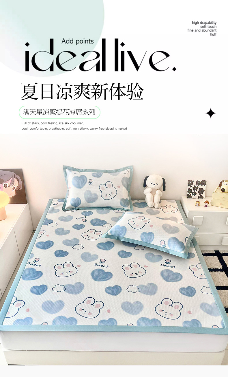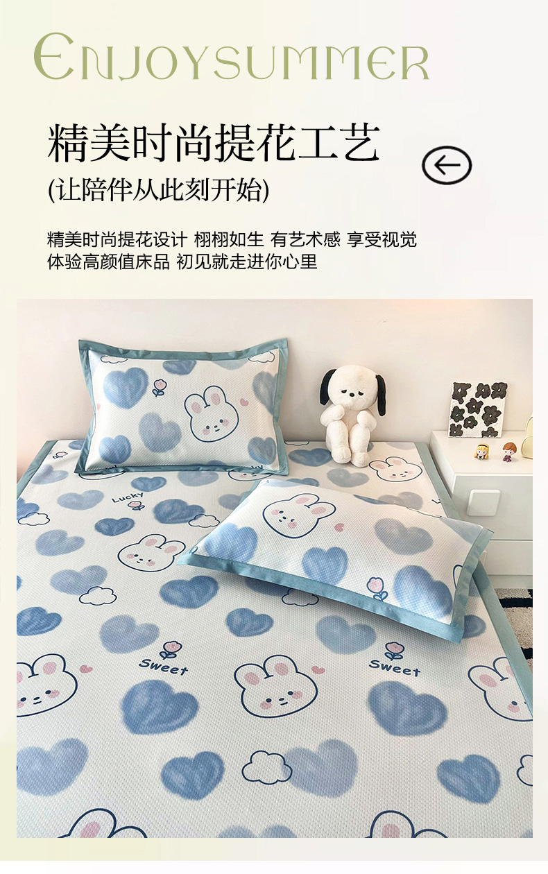 (总)倾慕家纺 2026新款A类满天星提花凉感凉席系列,缤纷兔,波波小龙,波浪彩龙,哈皮龙,开心兔,蓝色爱恋,乐动猫咪,律动小球,森林龙宝宝,条纹狗狗,小猫侠,小森林,叶小兔,PP熊猫