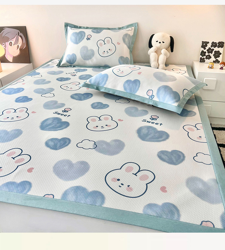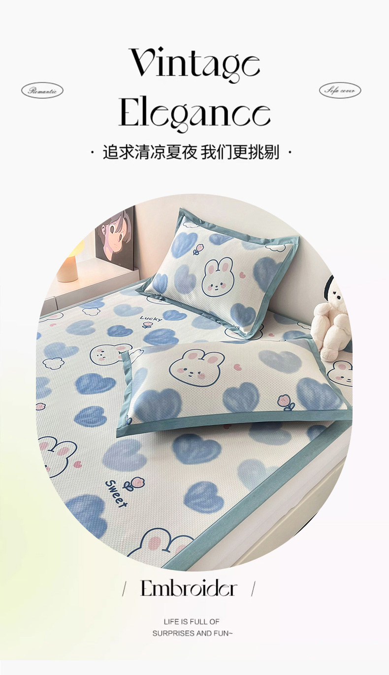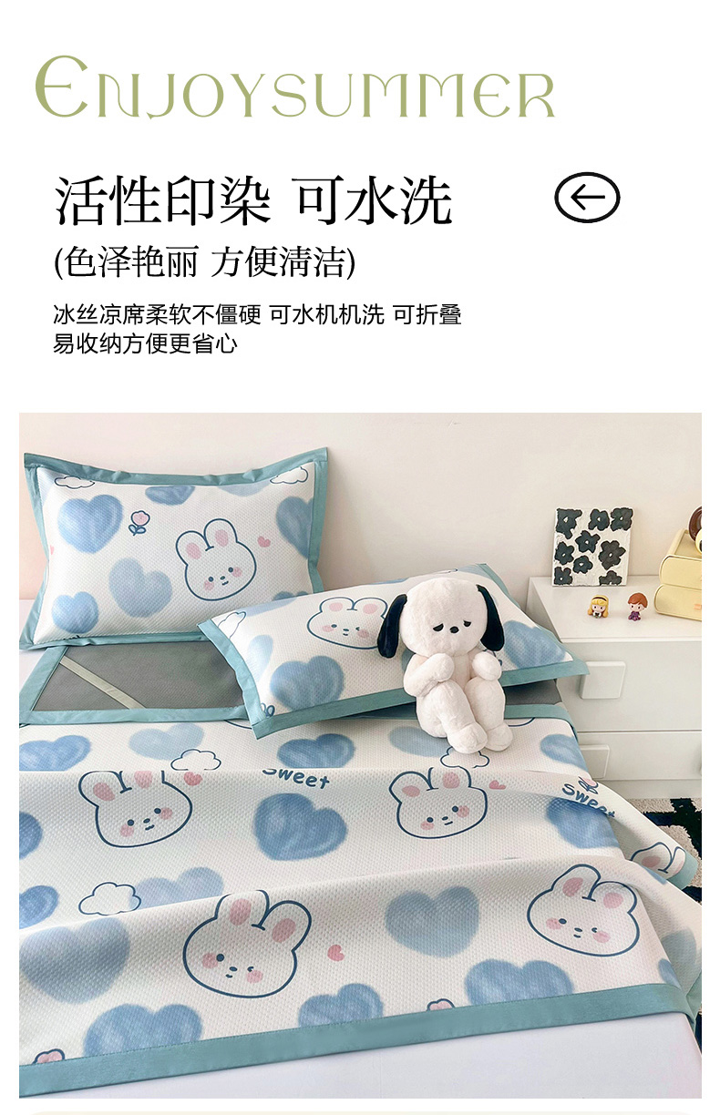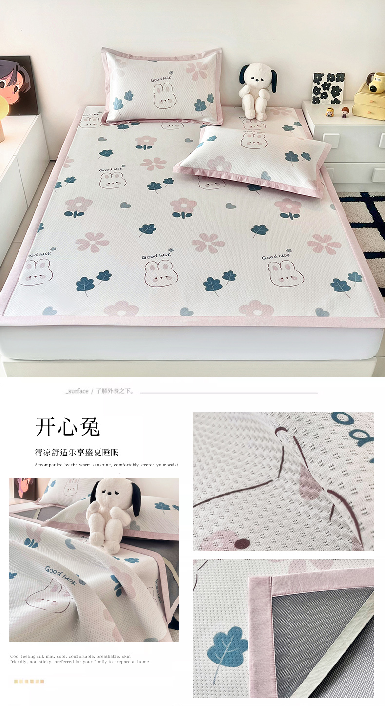 (总)倾慕家纺 2026新款A类满天星提花凉感凉席系列,缤纷兔,波波小龙,波浪彩龙,哈皮龙,开心兔,蓝色爱恋,乐动猫咪,律动小球,森林龙宝宝,条纹狗狗,小猫侠,小森林,叶小兔,PP熊猫