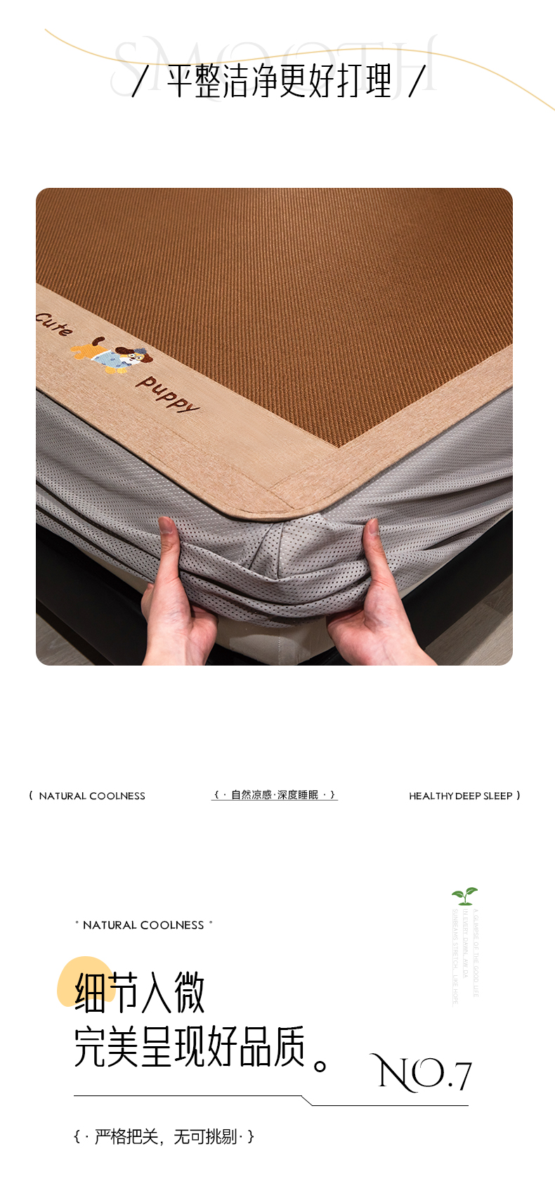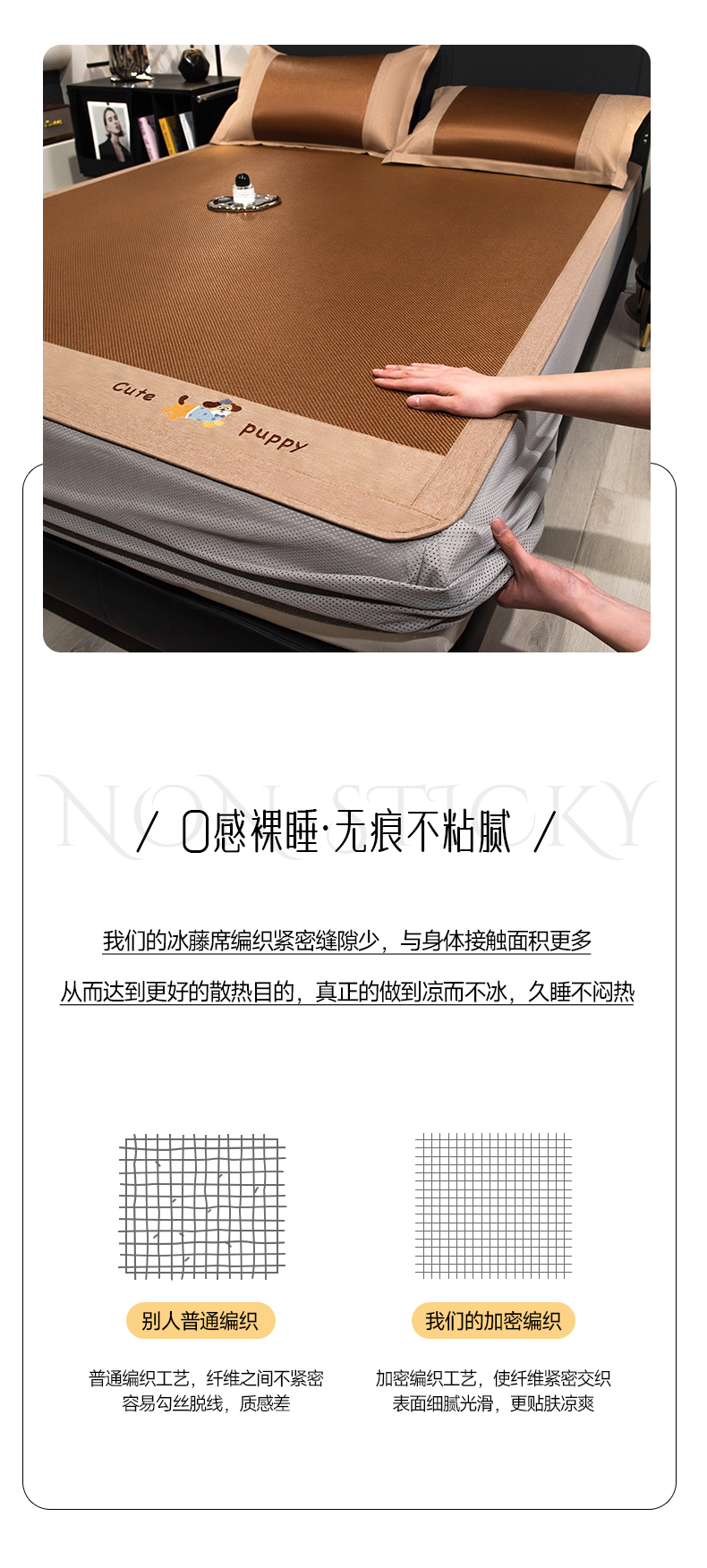 商品名称:倾慕家纺 2026新款A类刺绣冰藤席--床笠款 刺绣小狗棕色床笠款
