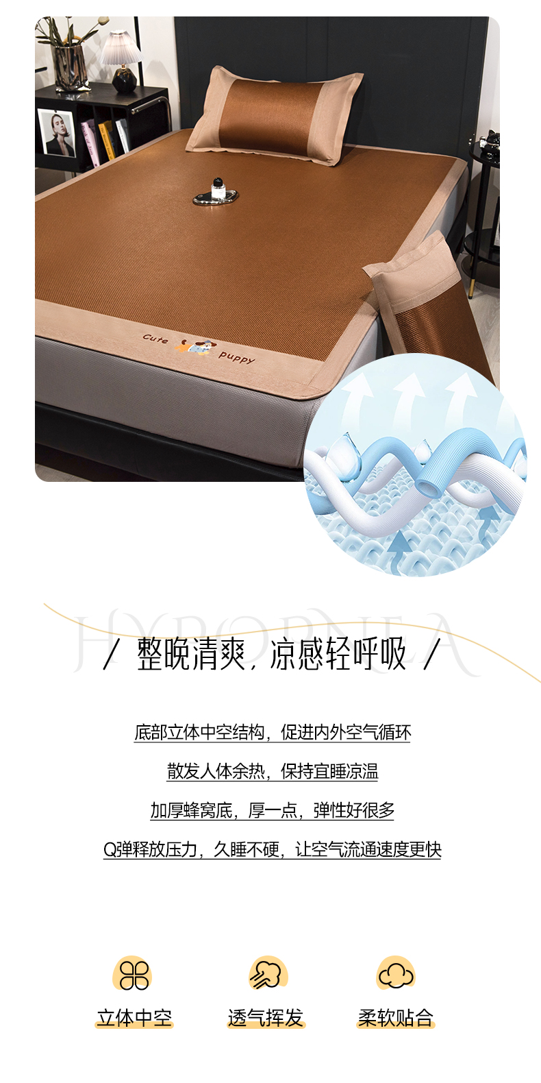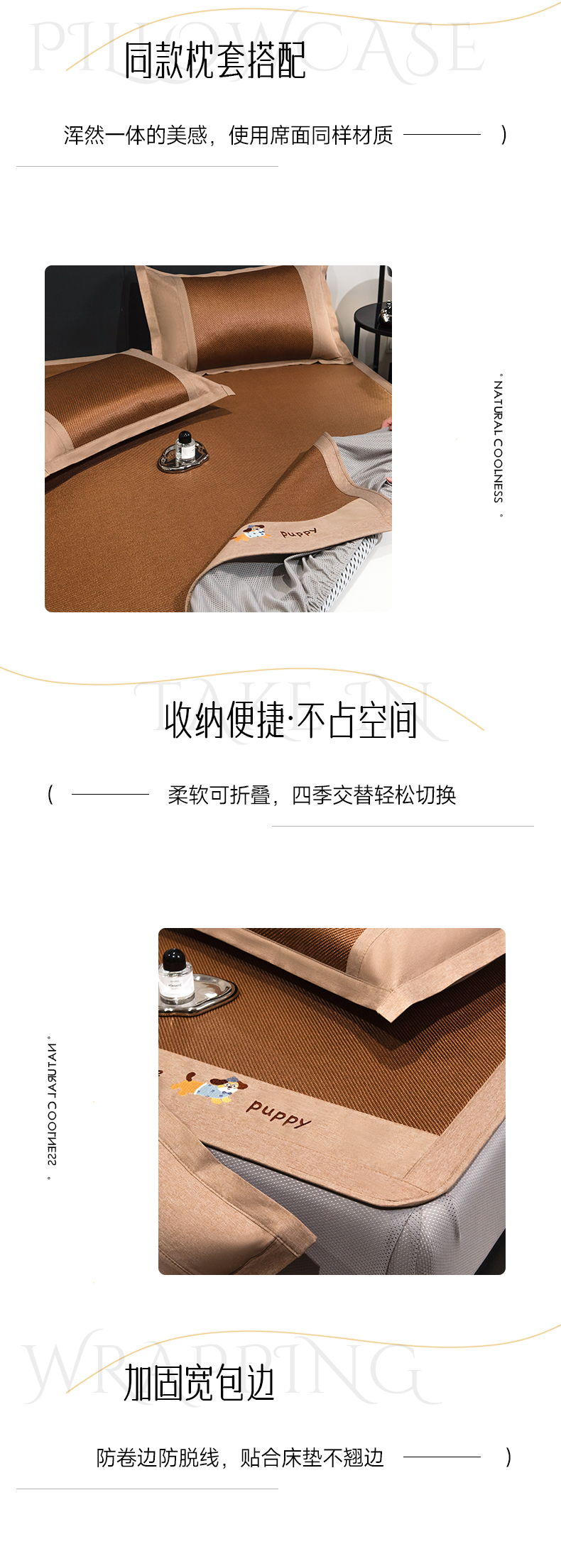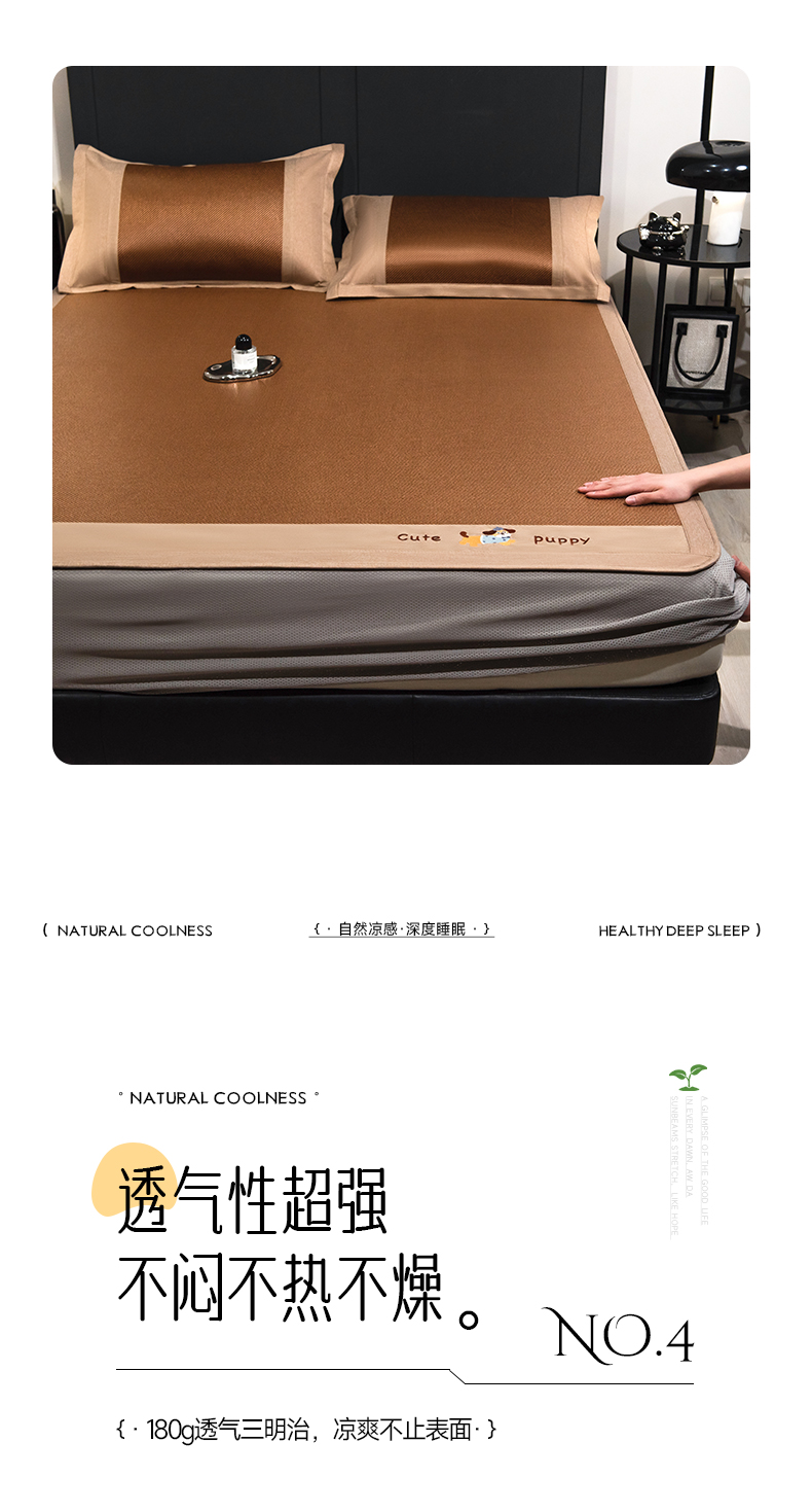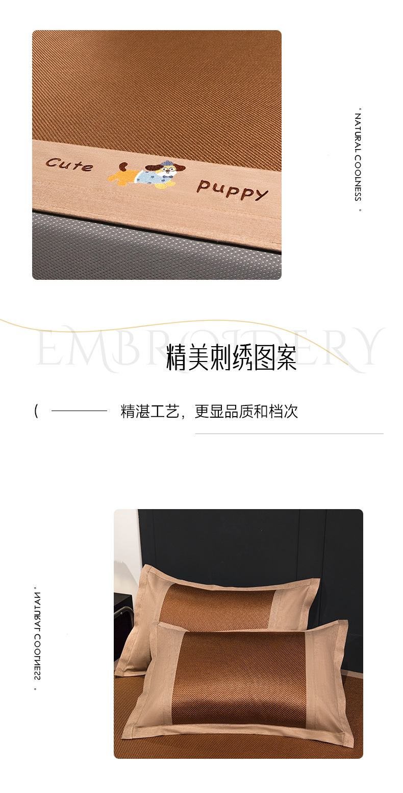 倾慕家纺 2026新款A类刺绣冰藤席--床笠款 刺绣小狗棕色床笠款
