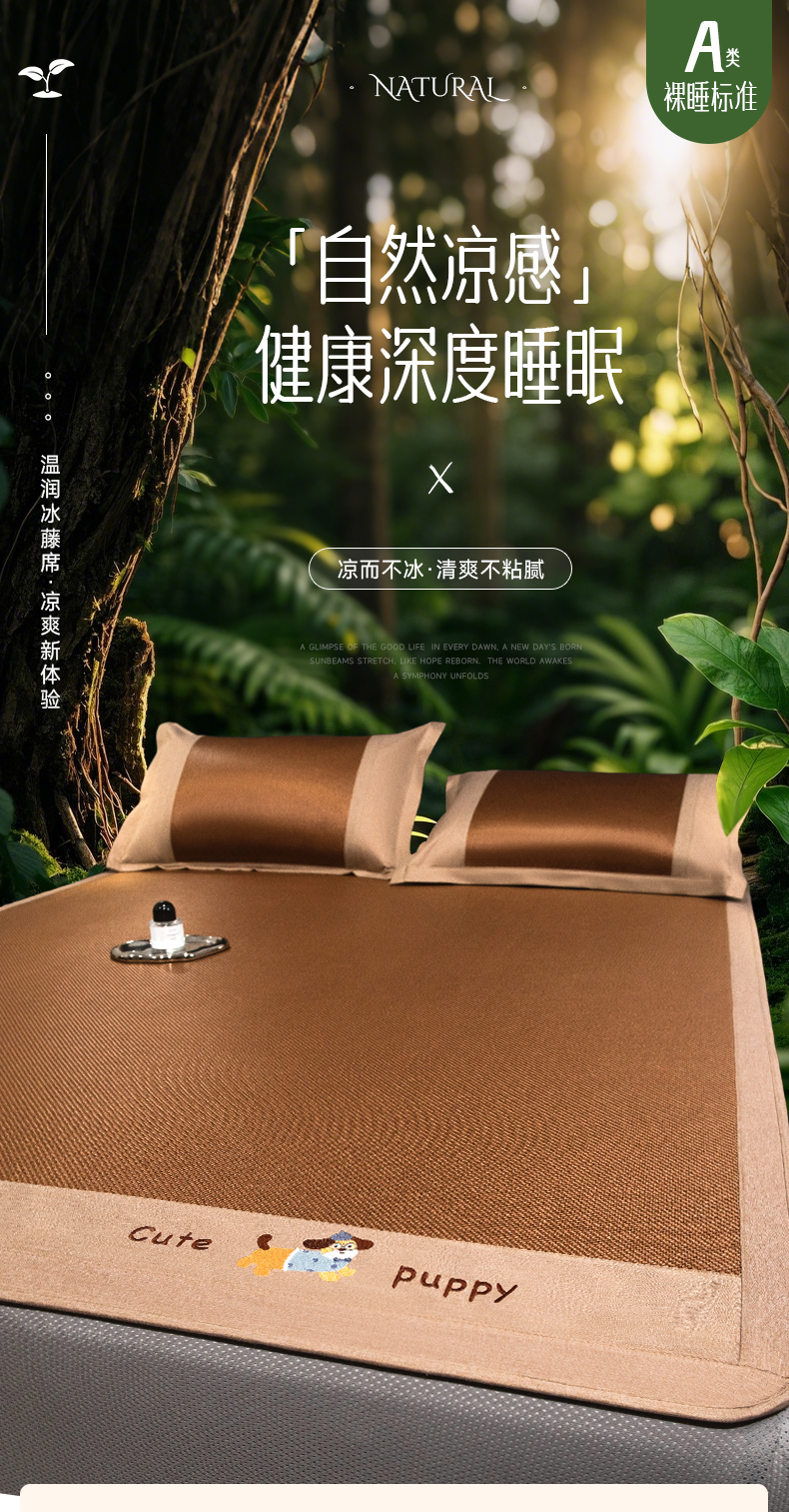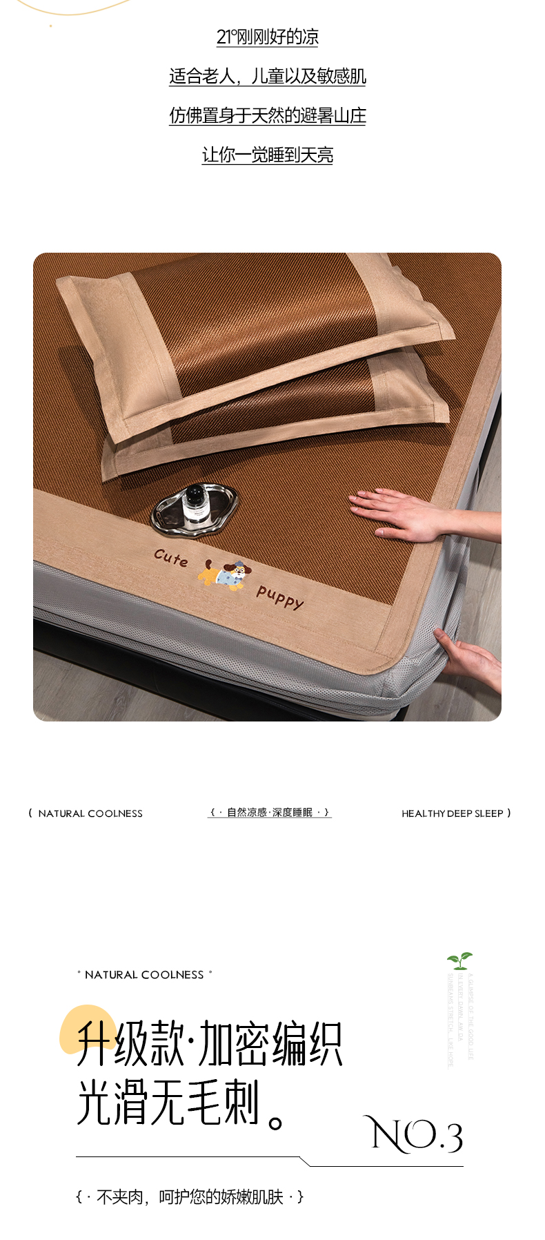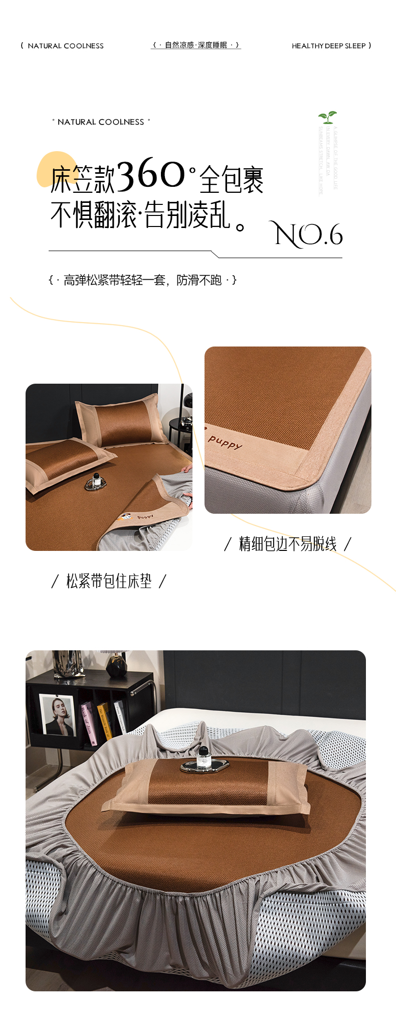 倾慕家纺 2026新款A类刺绣冰藤席--床笠款 刺绣小狗棕色床笠款