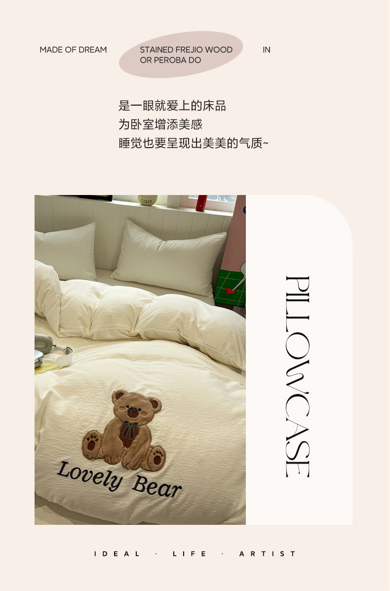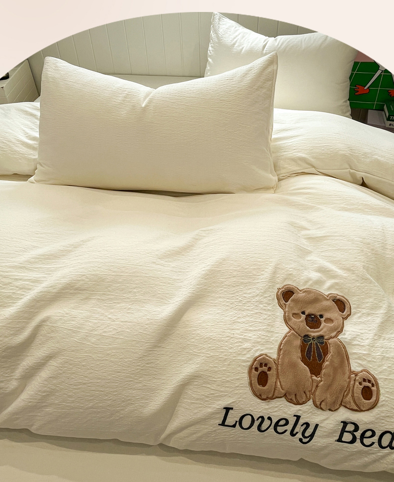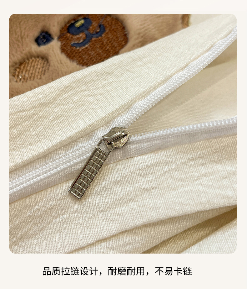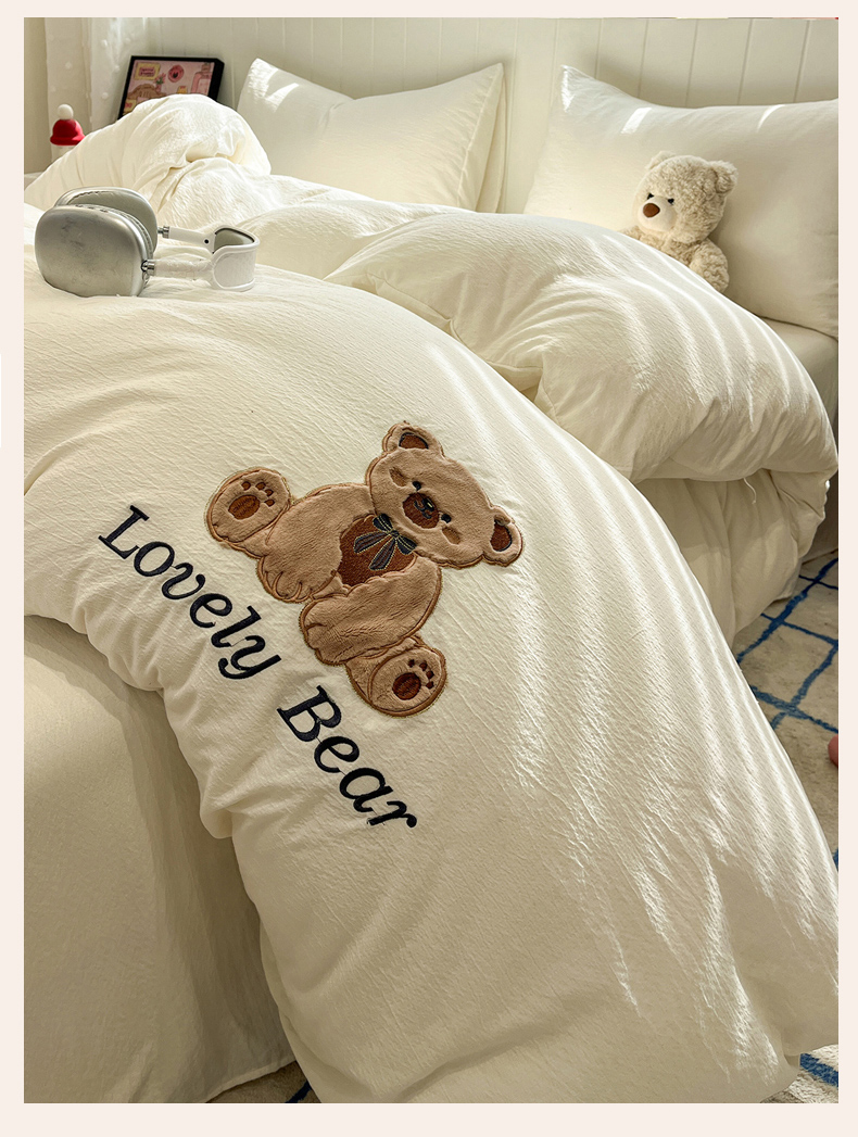 (总)爱思凯家纺 2026新款皱皱纱卡通贴布绣-咖崽熊被套